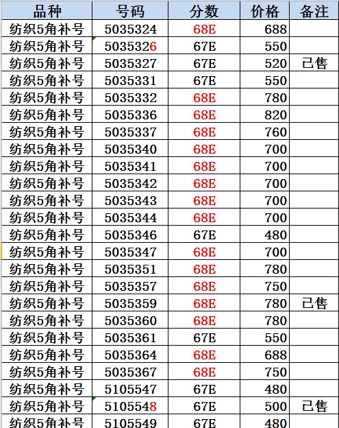 出售三版紡織5角補號 ..