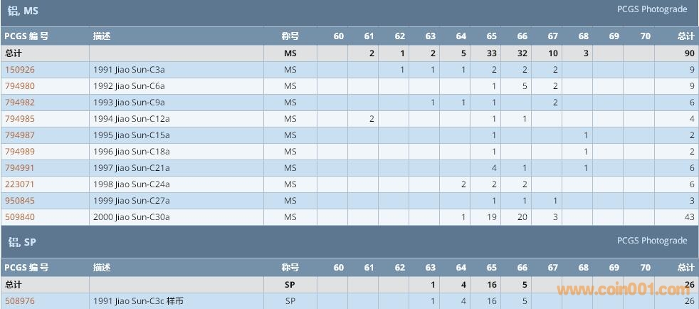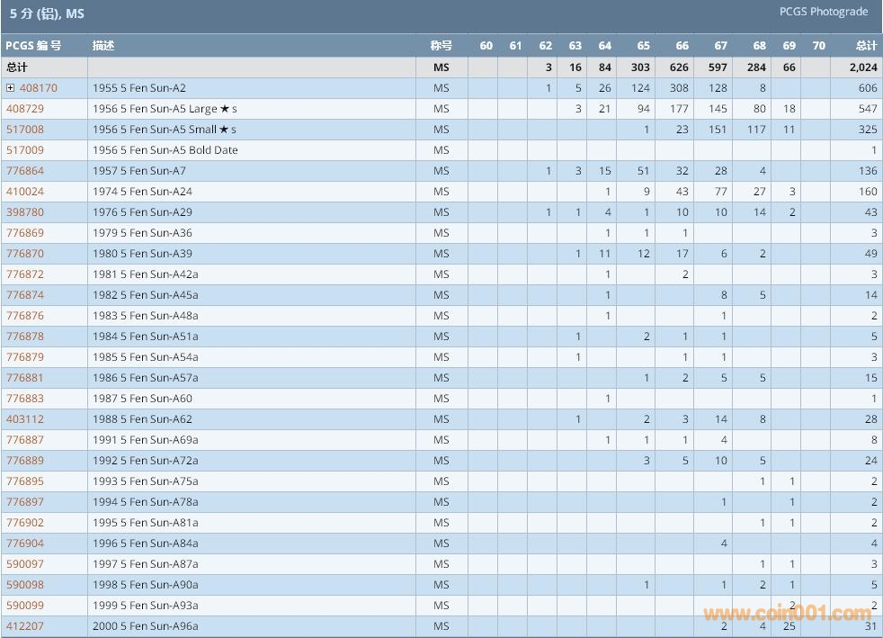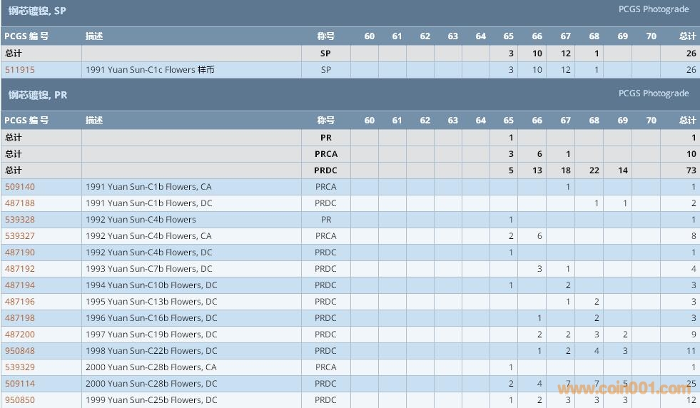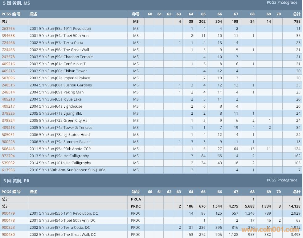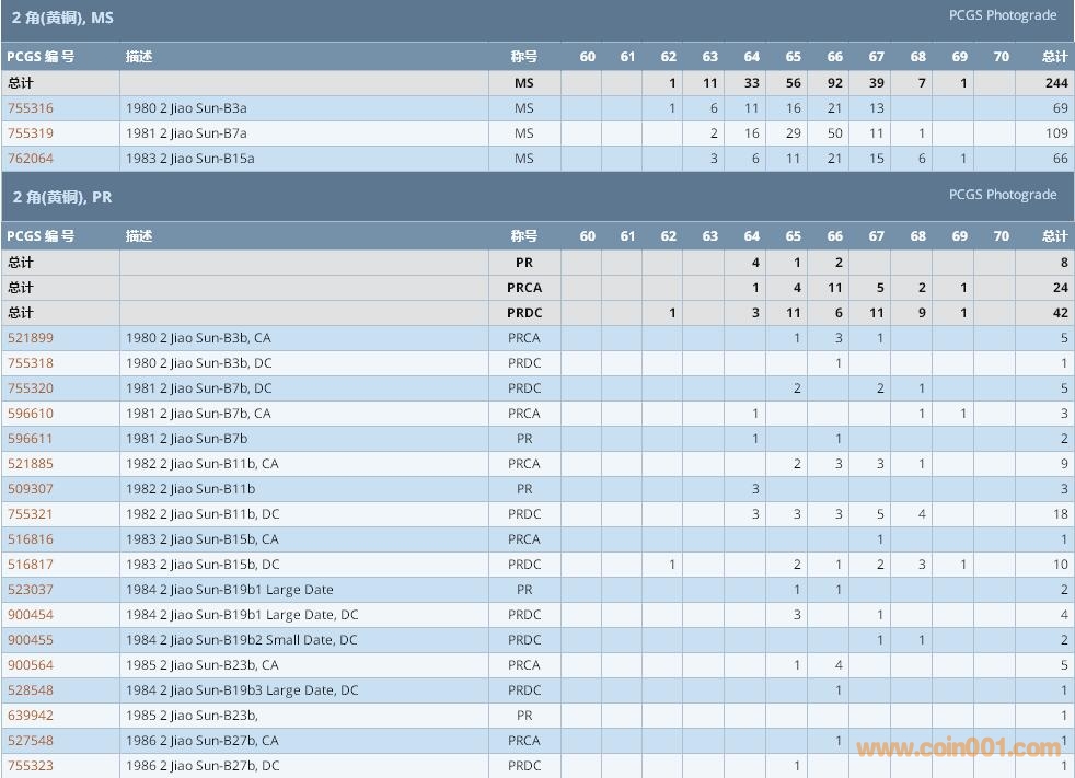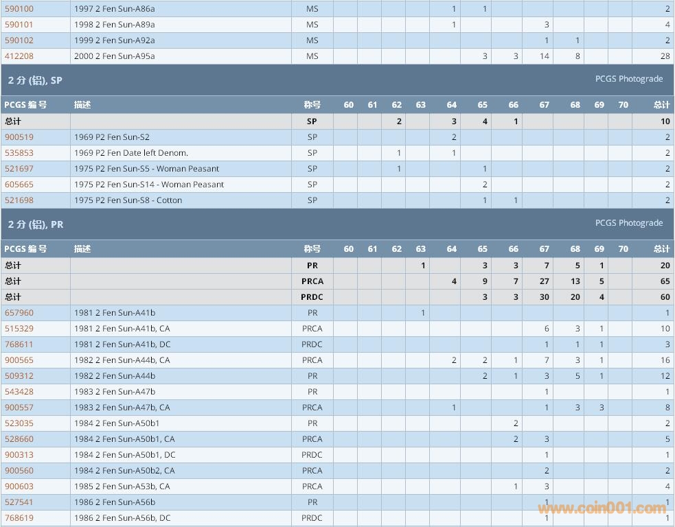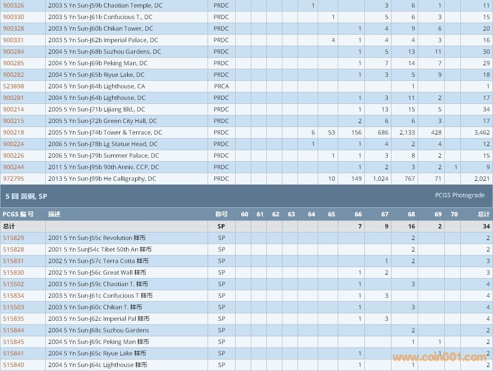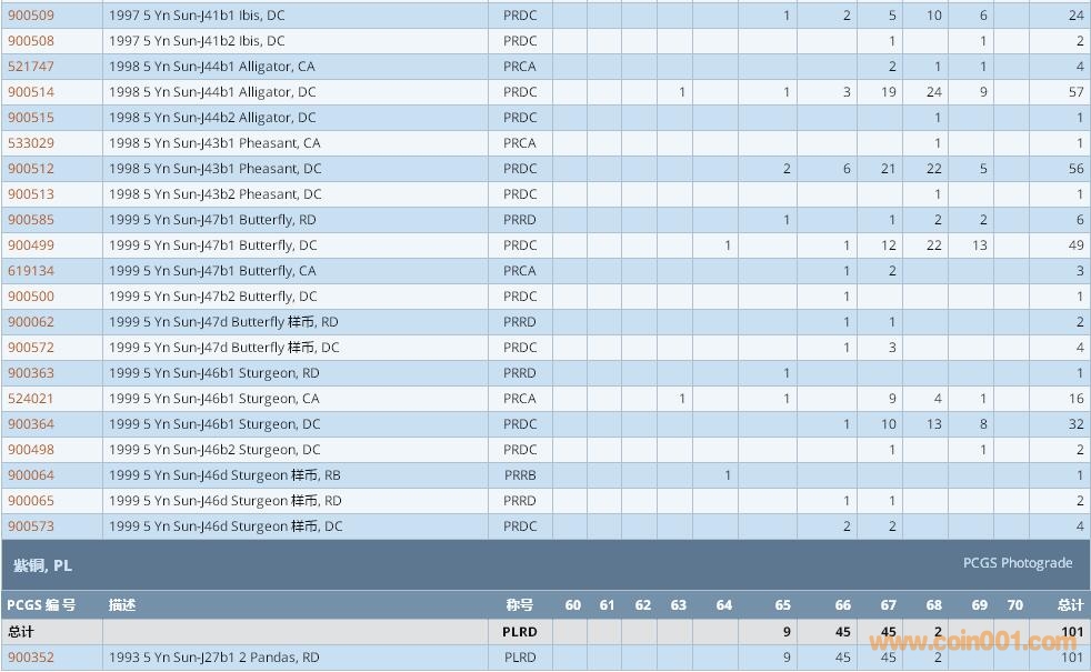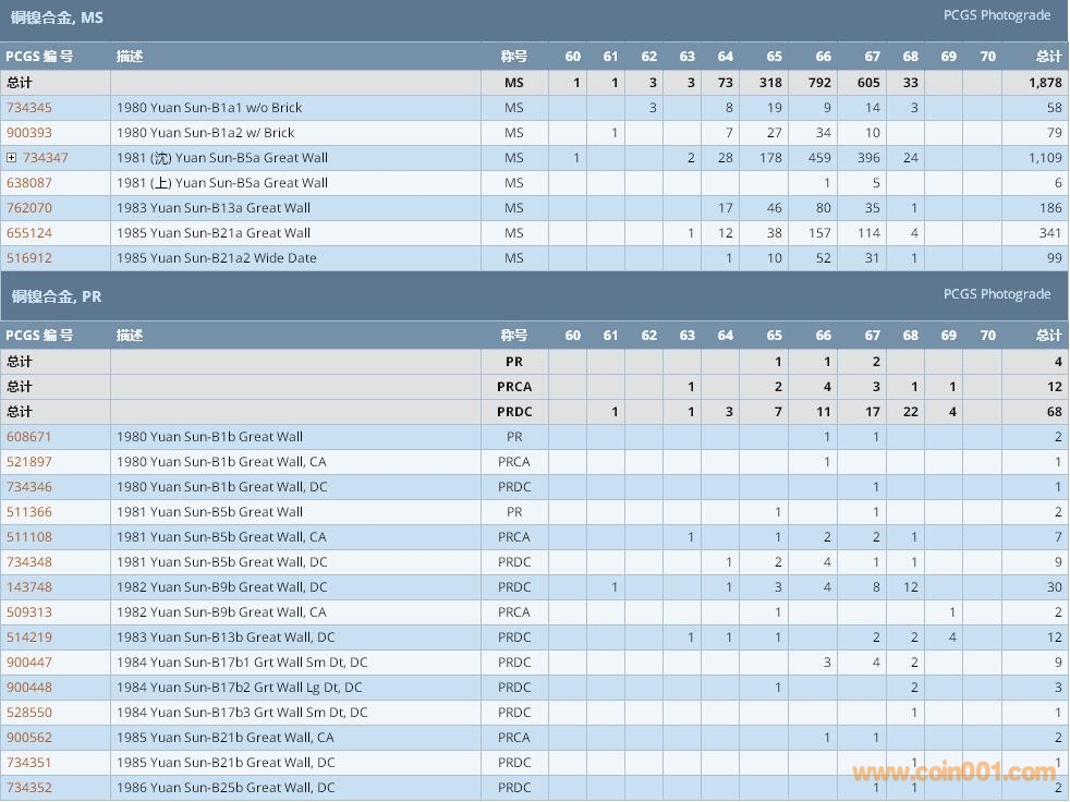 PCGS硬幣評級數(shù)量報告 ..