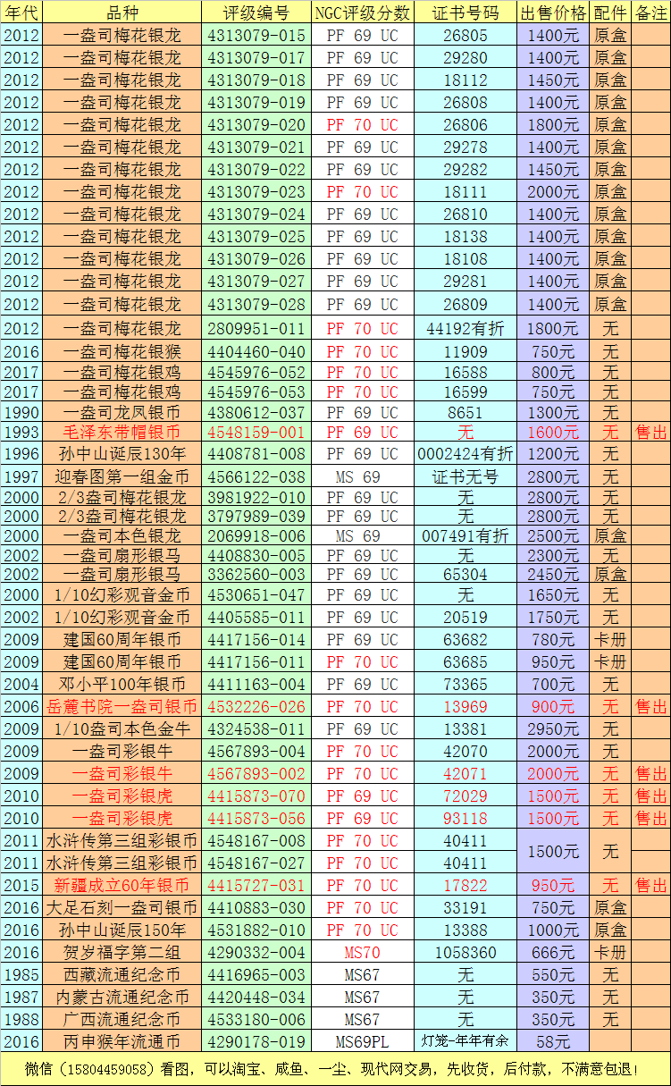 評級普通(精制)紀(jì)念幣交易