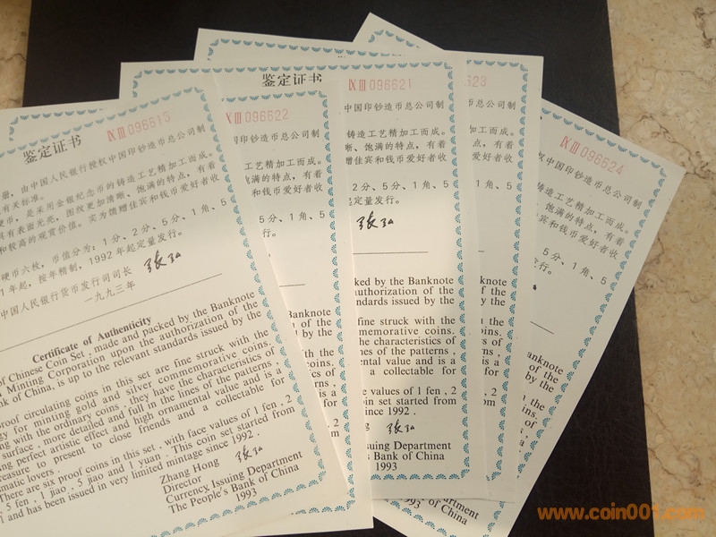 1992年精制套幣5套,整合拆的,證書全新,幣品不錯(cuò),900一套,通走包順豐!