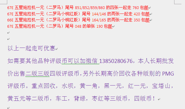 PMG五星拖拉機一元幾張