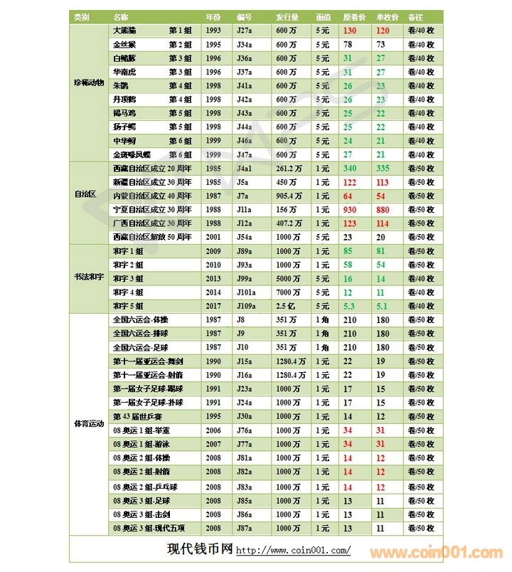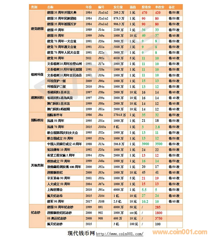 2018.4.22流通紀(jì)念幣報(bào)價(jià)