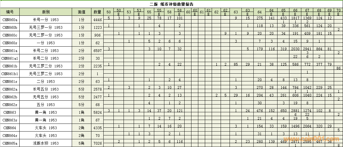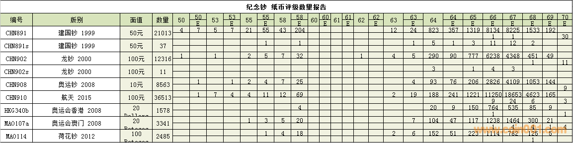 PMG紙幣評(píng)級(jí)數(shù)量報(bào)告 ..