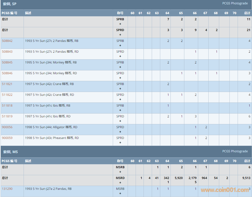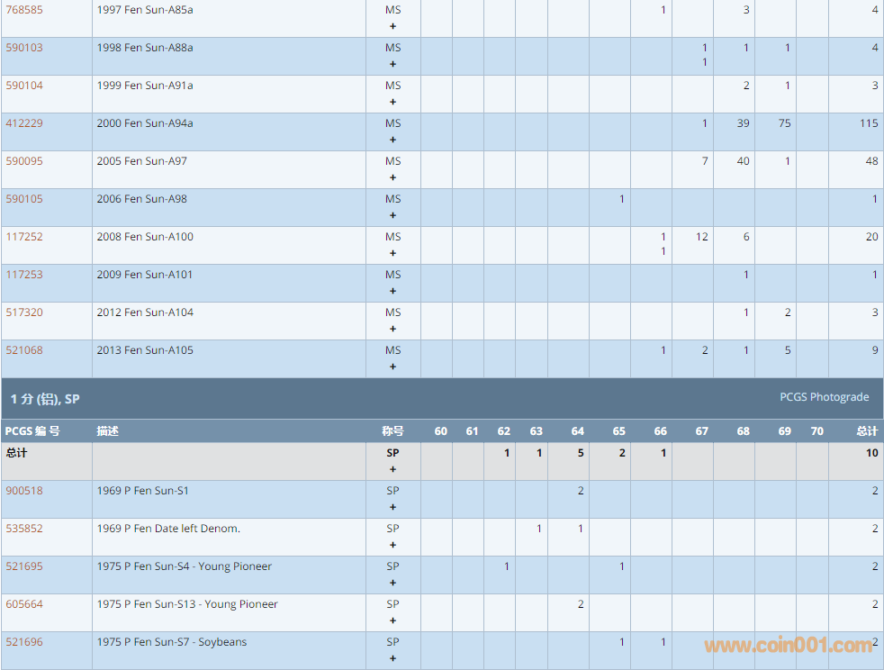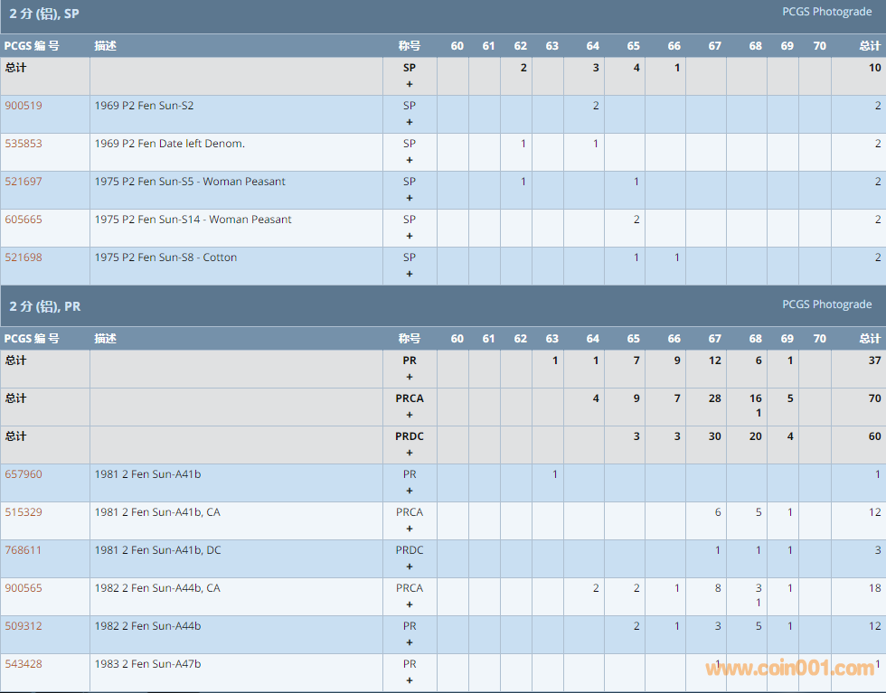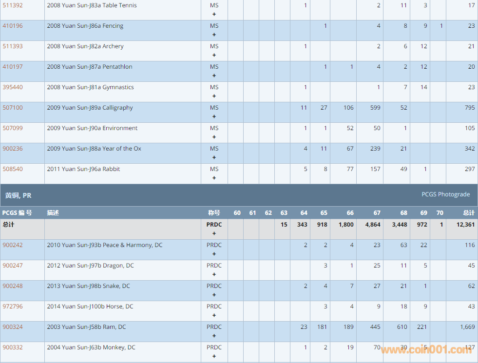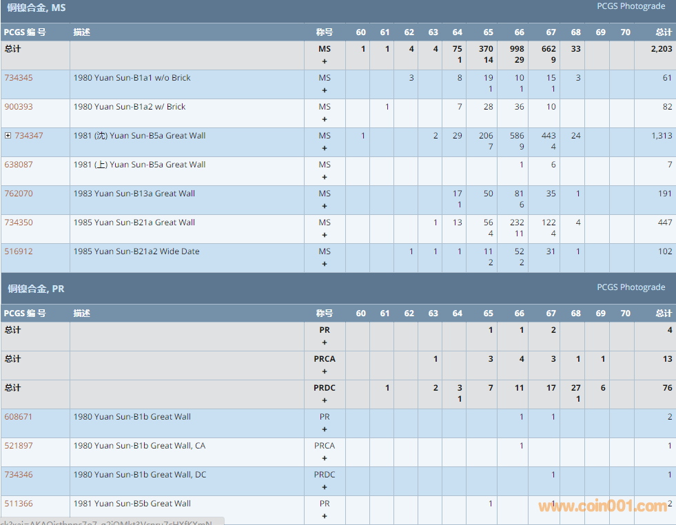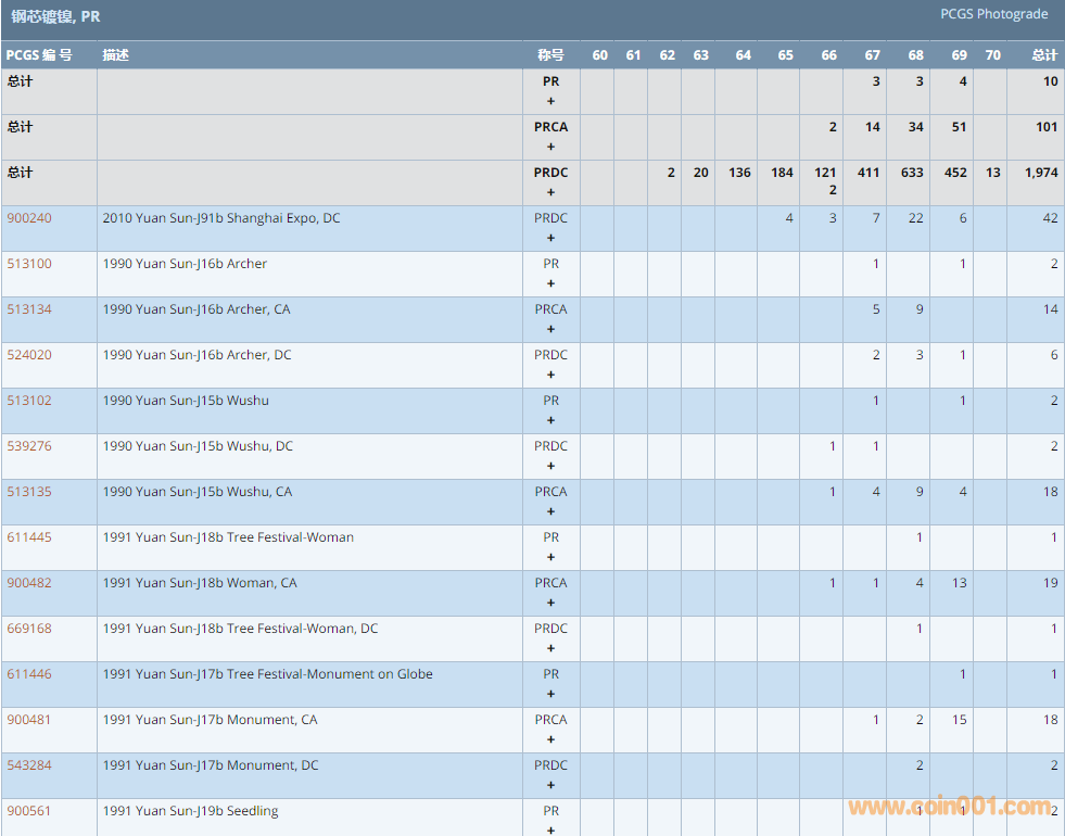 PCGS硬幣評級數(shù)量報告 ..