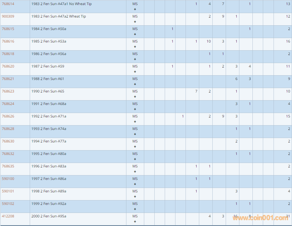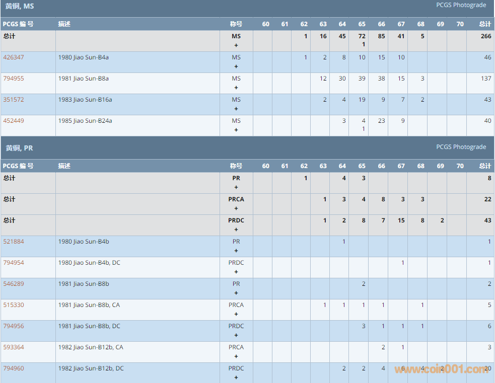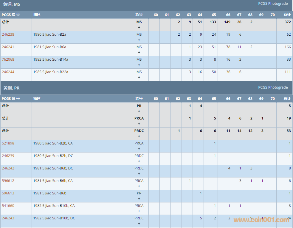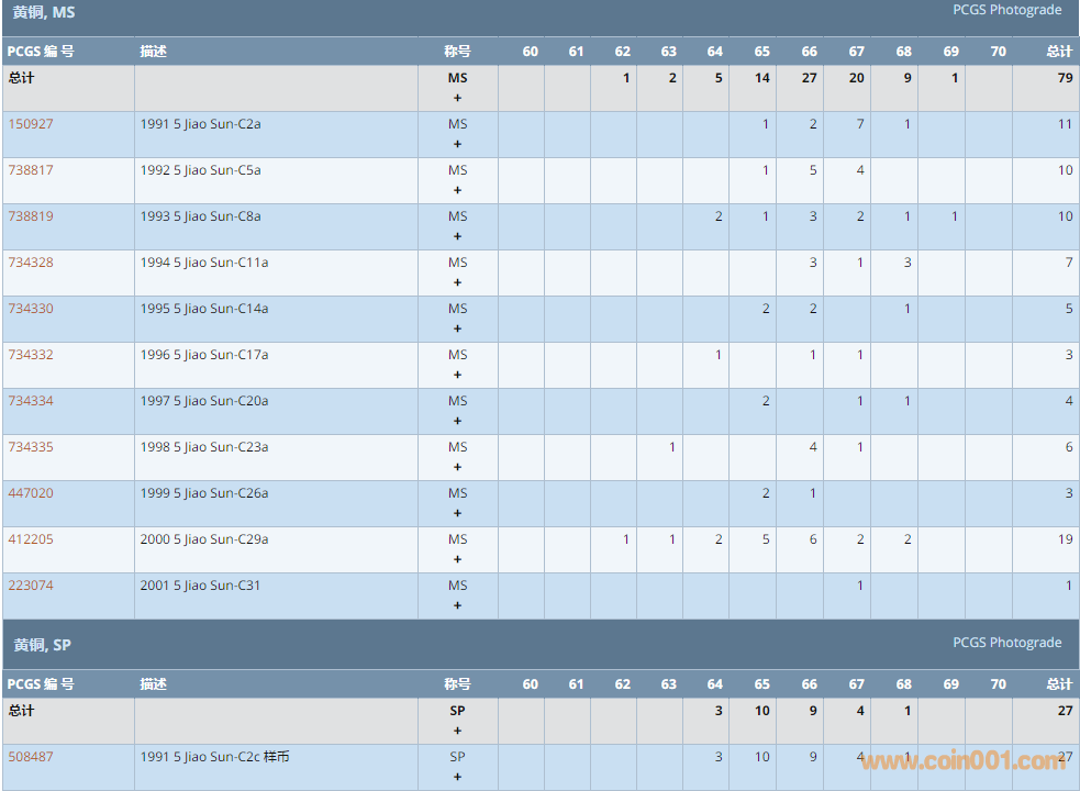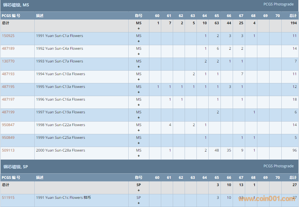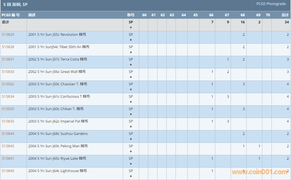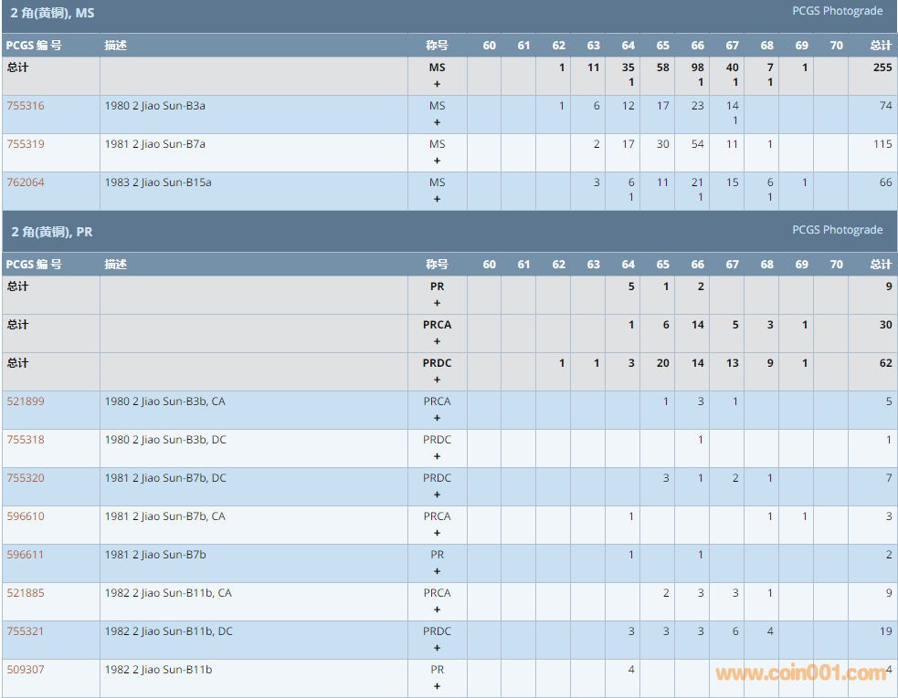 PCGS硬幣評級數(shù)量報告 ..