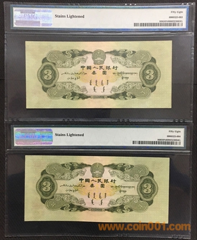 綠叄元 PMG58連號(hào)2張