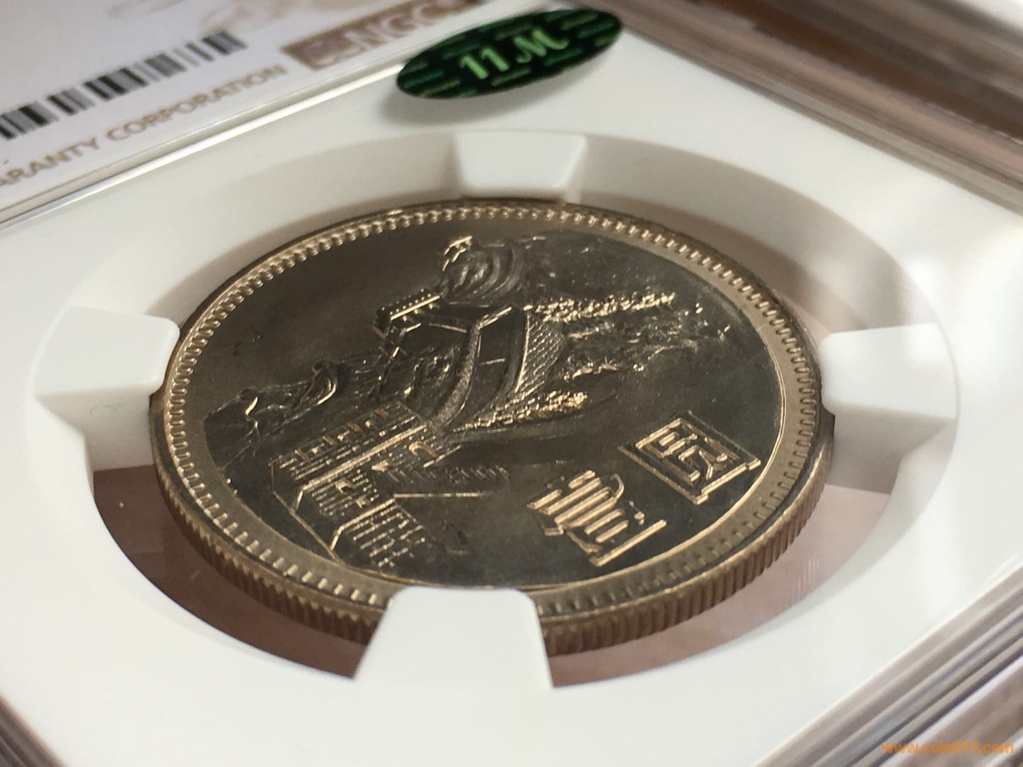 這卷疑似早期卷,卷光純正,底板細(xì)膩,基本沒有鑄紋,卷內(nèi)大約有一半的幣國徽內(nèi)顏色跟外面顏色略有差異,國徽內(nèi)有鏡面效果(部分有拉絲),長城面下半部分也帶鏡面,有點(diǎn)像某兄群內(nèi)提到的國徽鏡面版(見圖1);