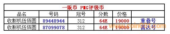 評級普通(精制)紀念幣交易