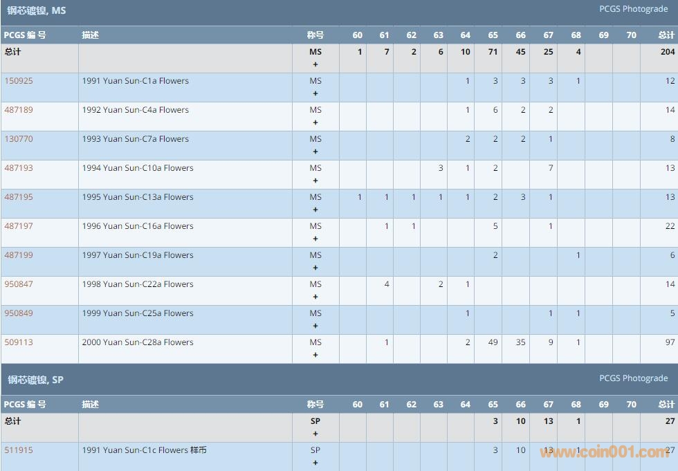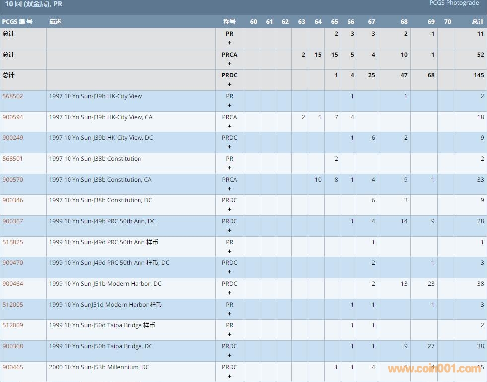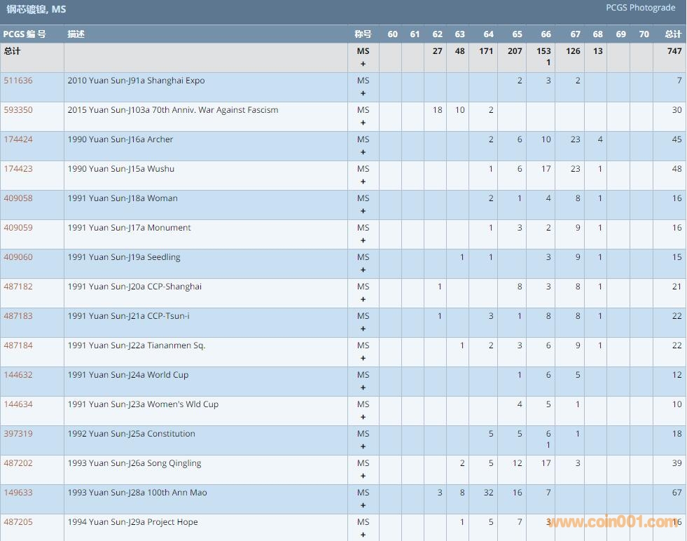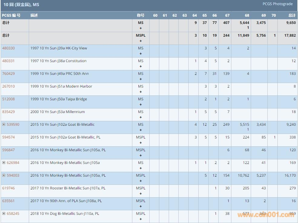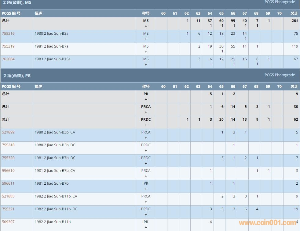 PCGS硬幣評級數(shù)量報告 ..
