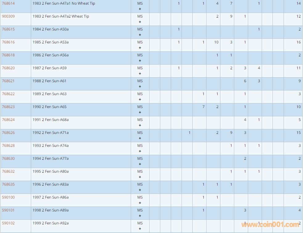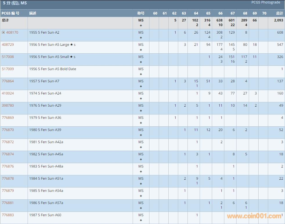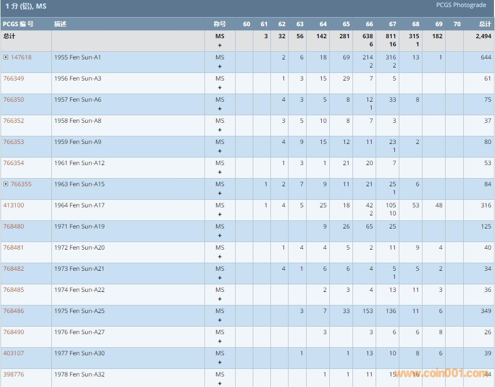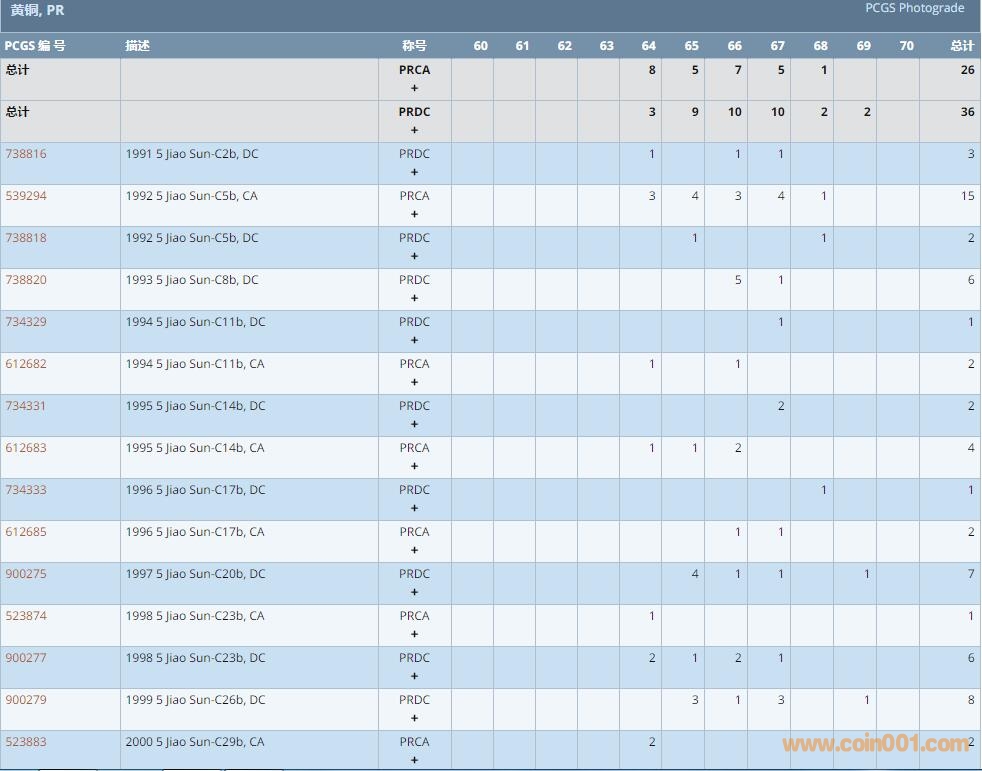 PCGS硬幣評級數(shù)量報告 ..