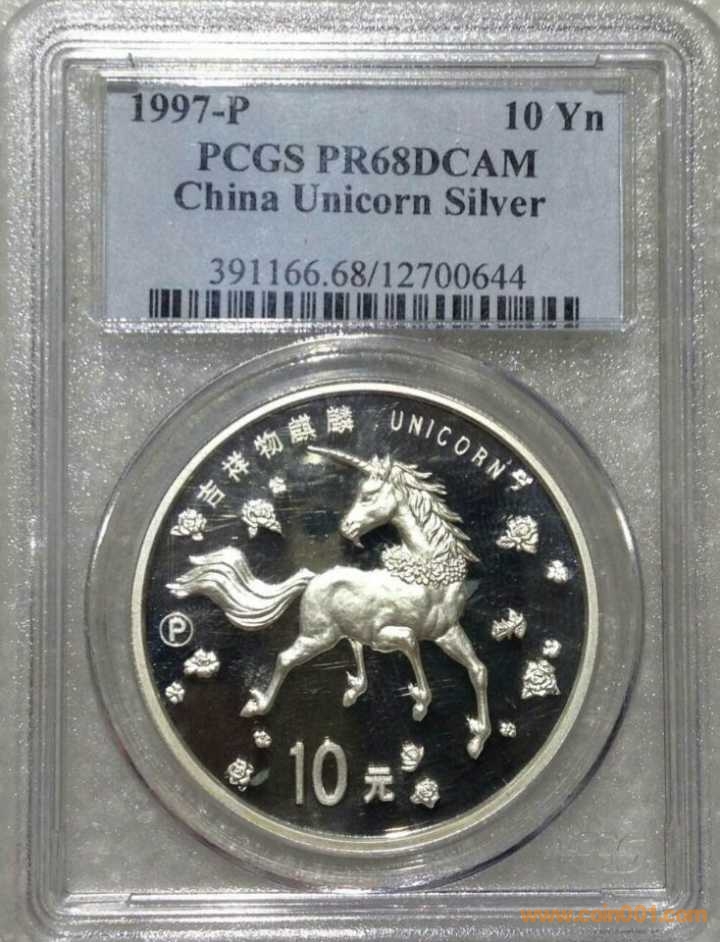 PCGS PF68P版1997麒麟一盎 ..