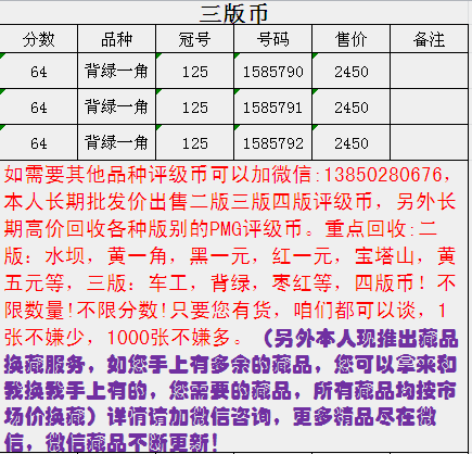 評級普通(精制)紀念幣交易