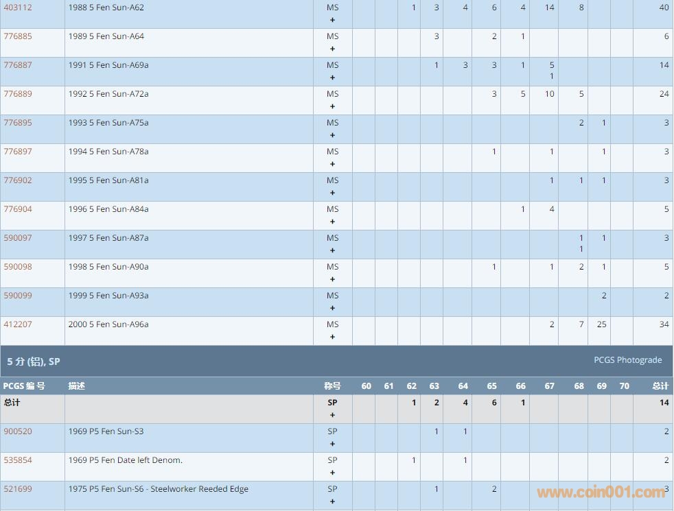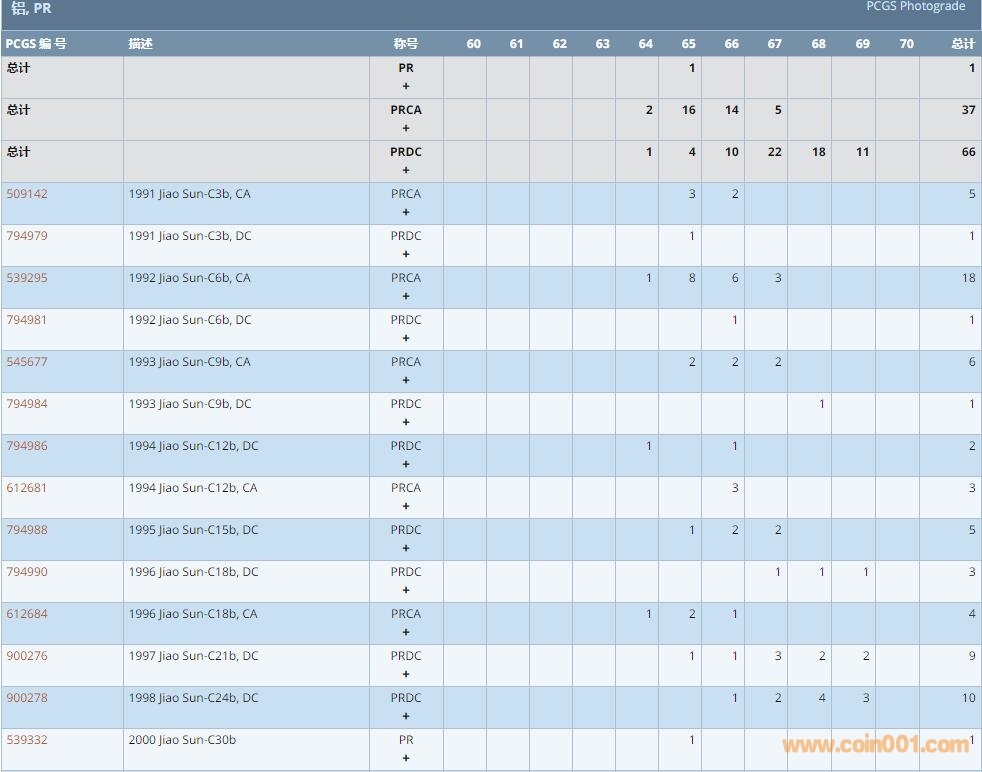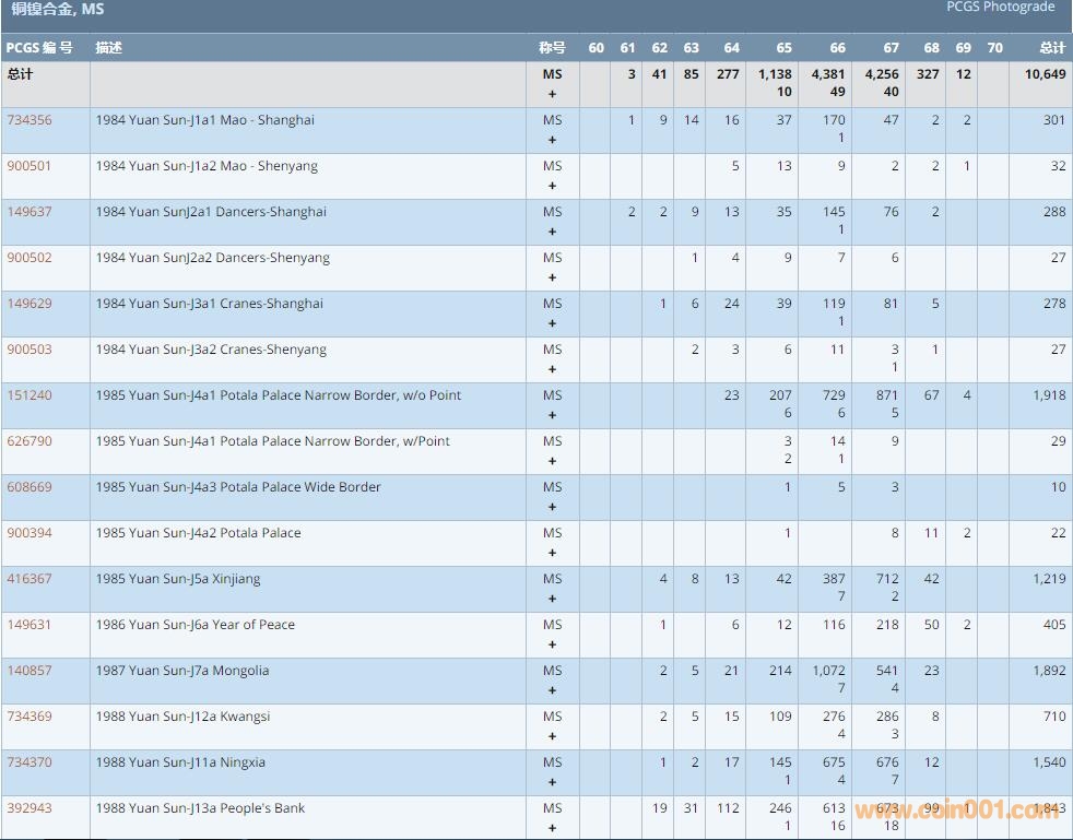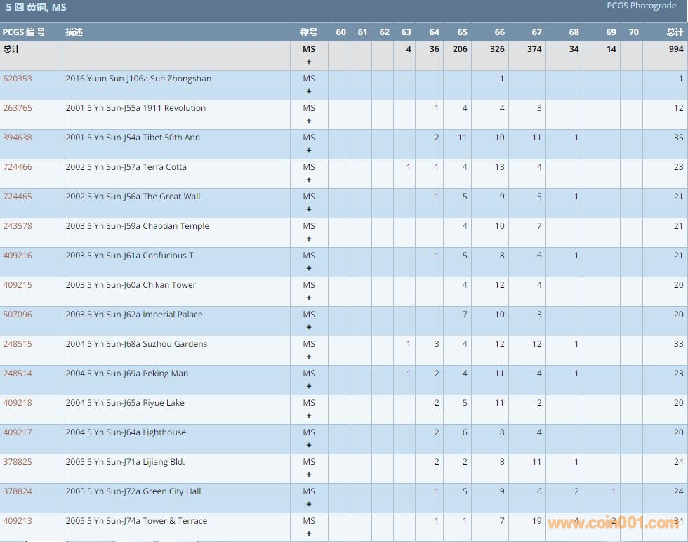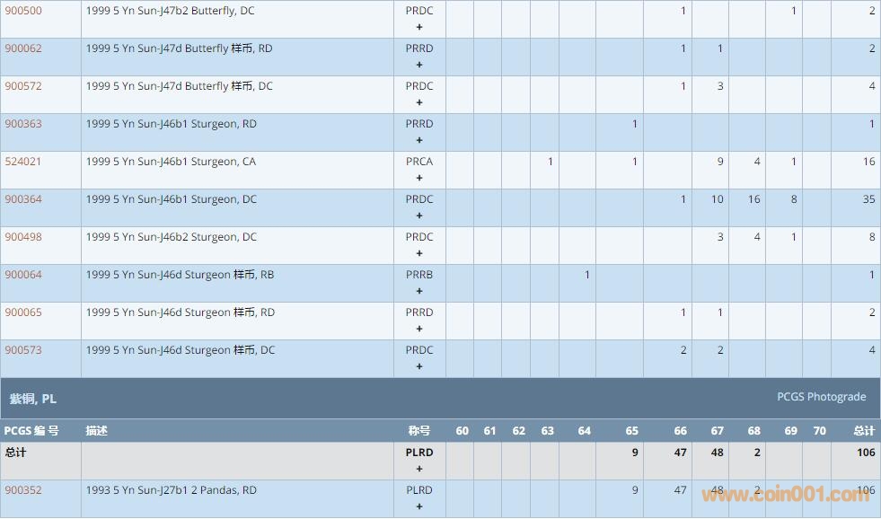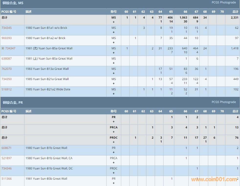 PCGS硬幣評級數量報告 ..