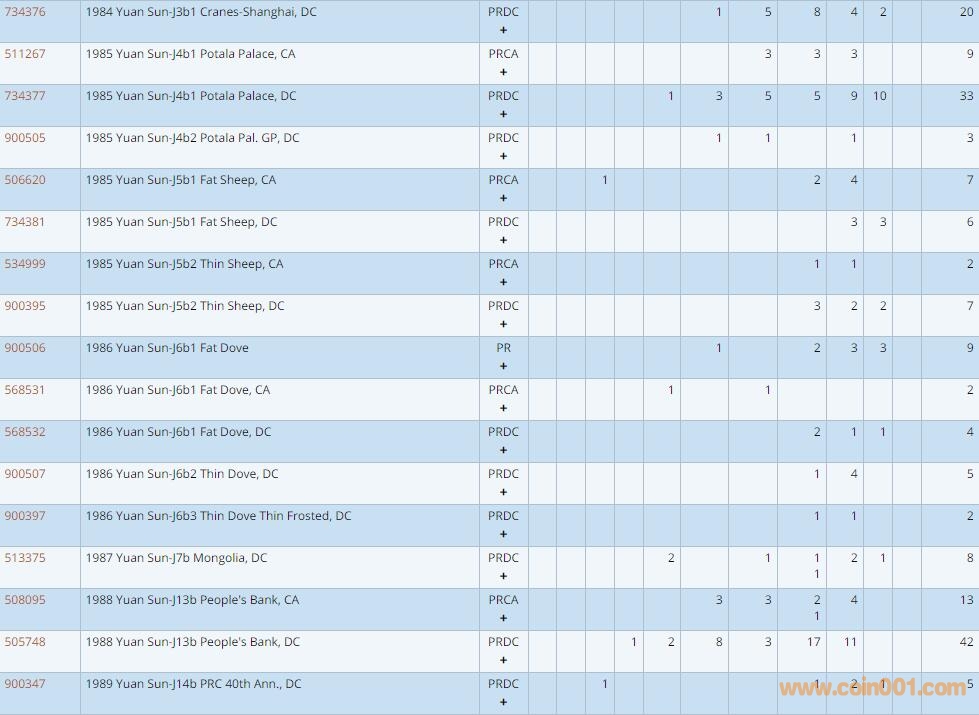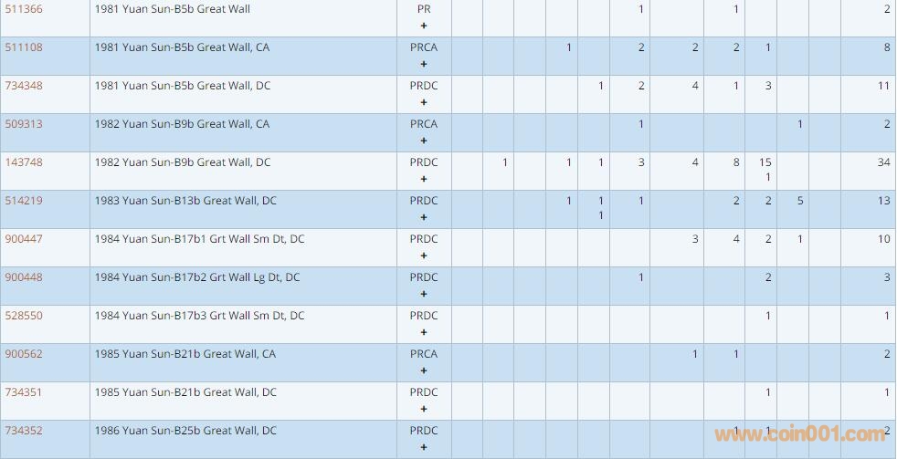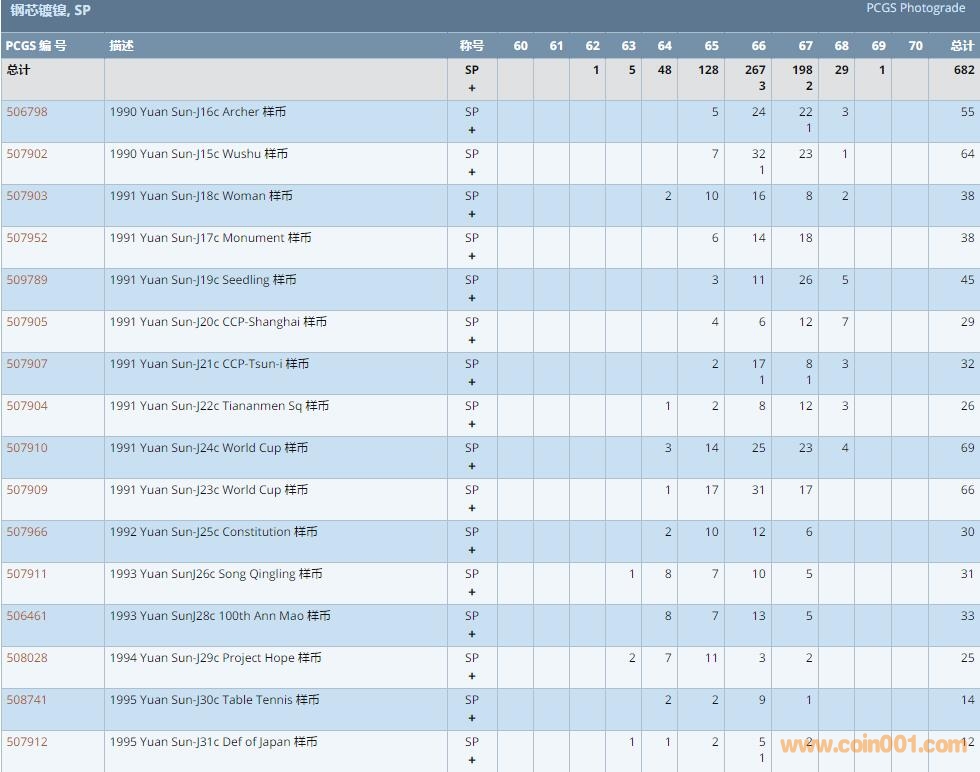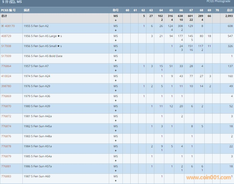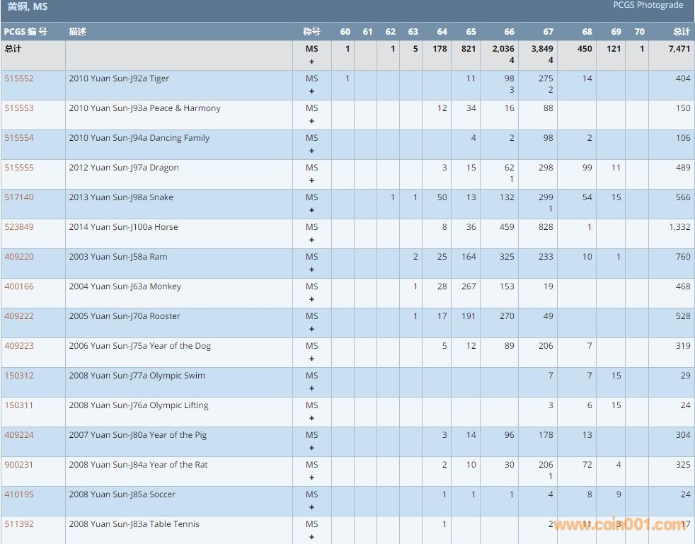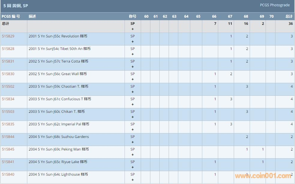 PCGS硬幣評級數量報告 ..