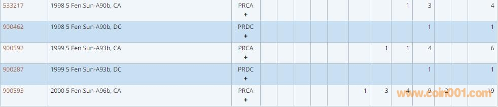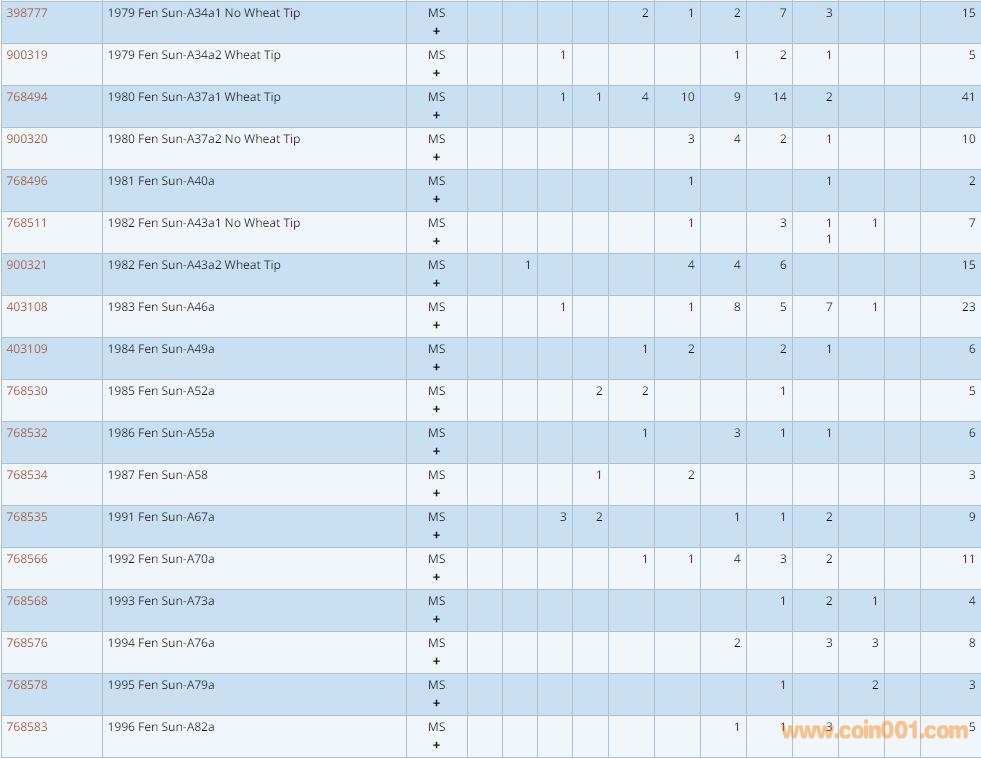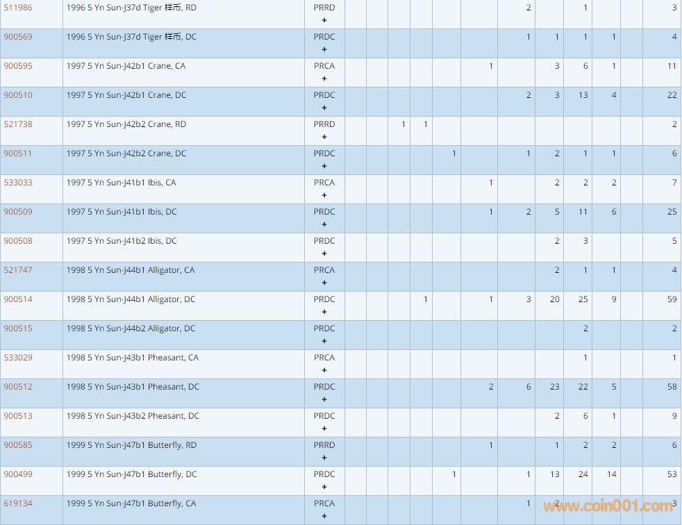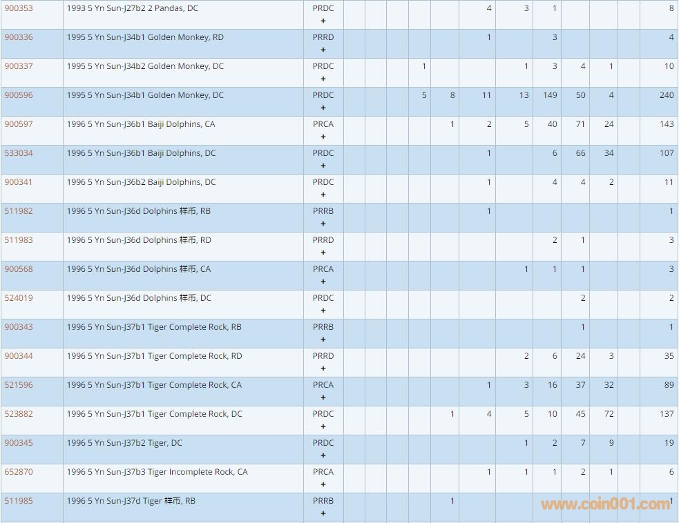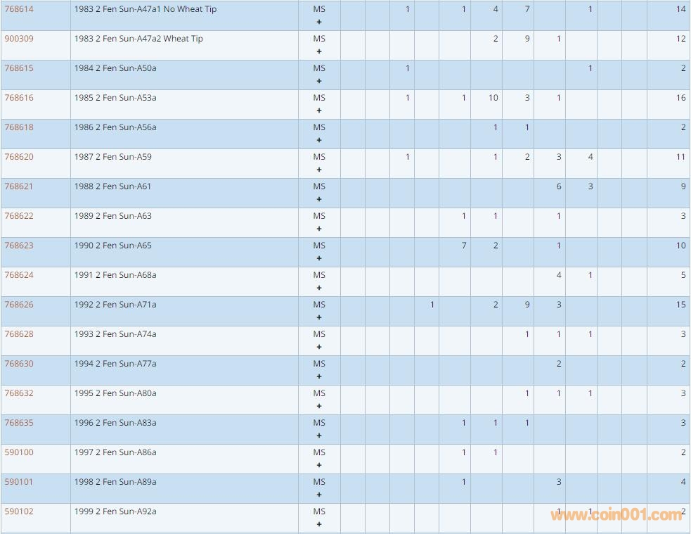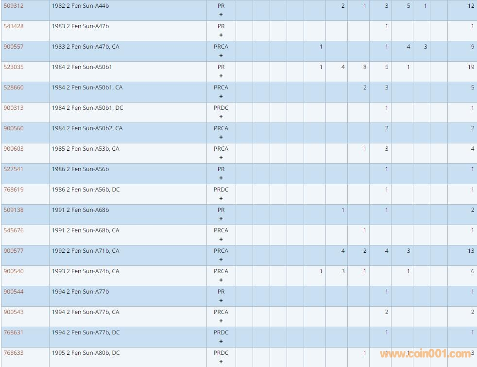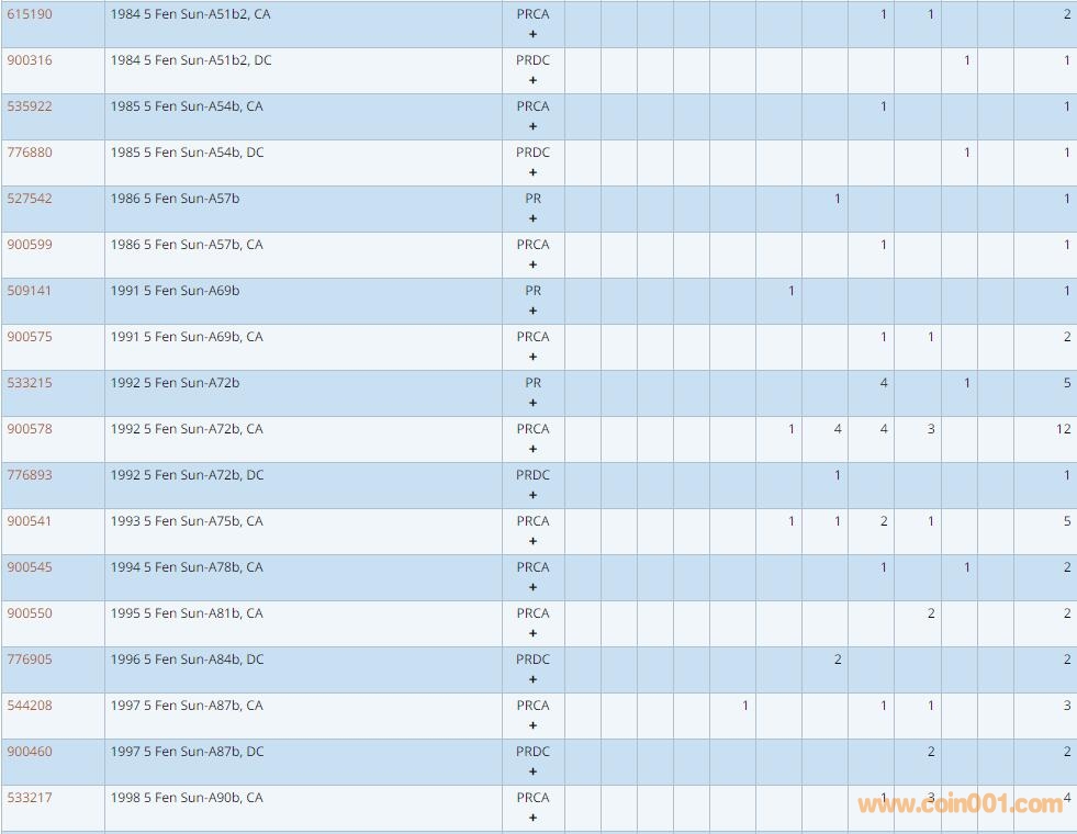 PCGS硬幣評級數量報告 ..