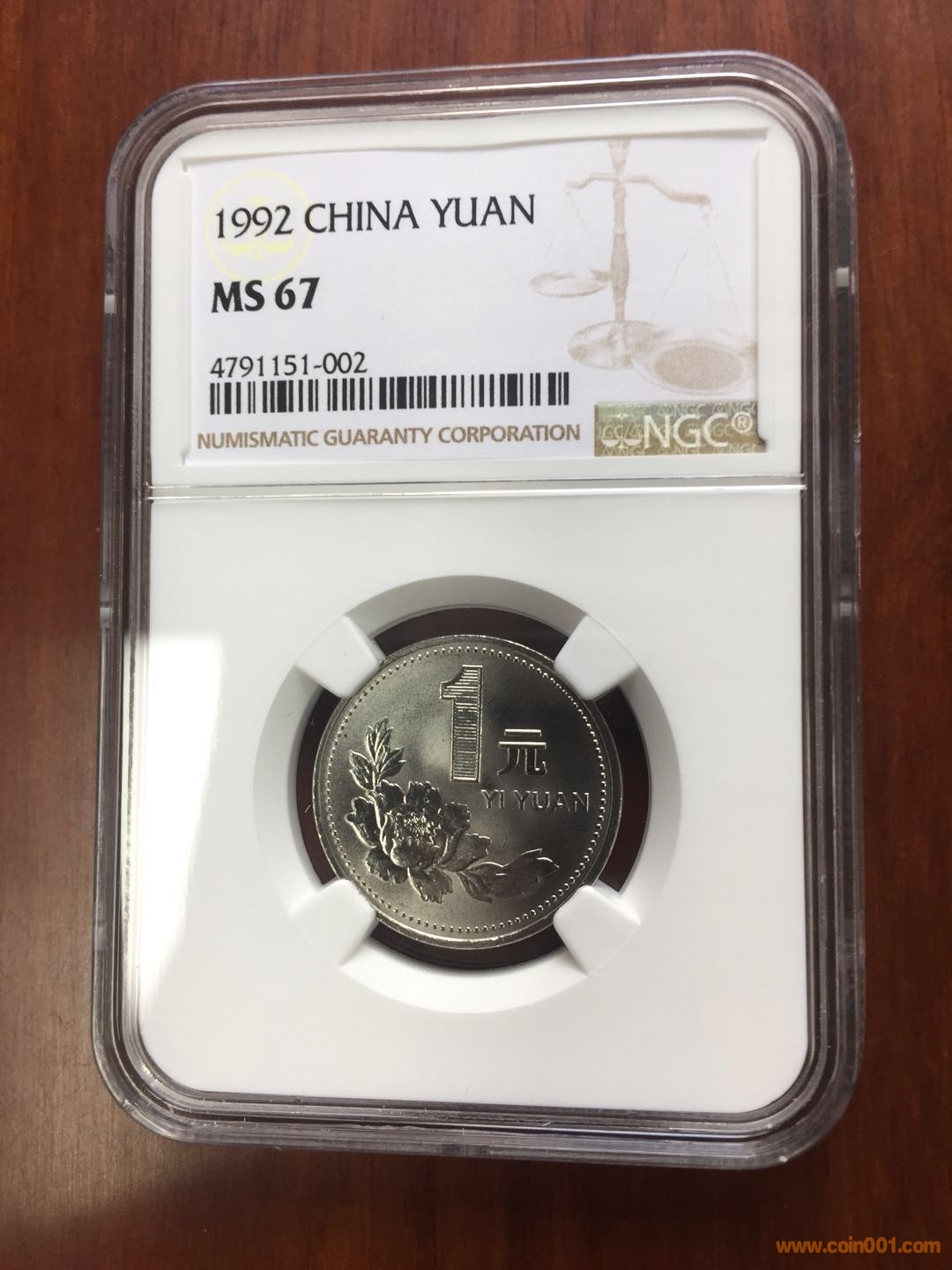 10,92年1元MS66------580【普制套裝出初鑄幣漂亮的牡丹國(guó)徽亮面版】