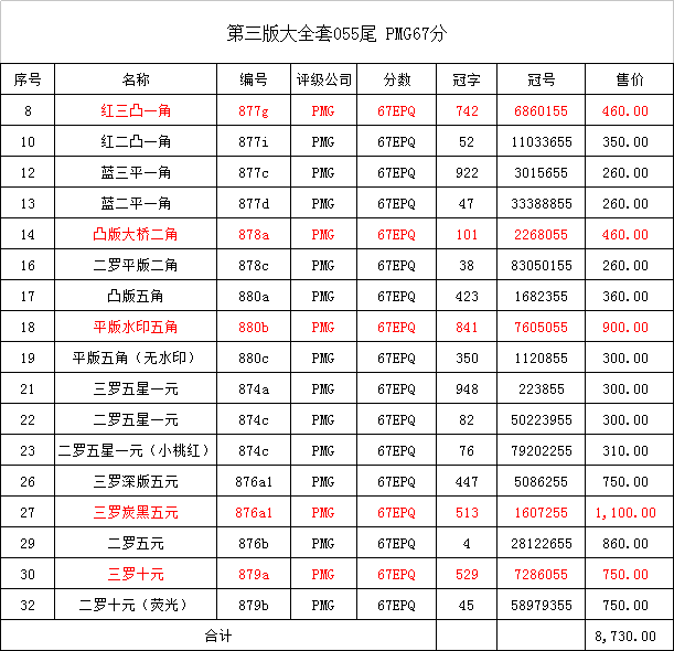 出三版PMG67分,雙尾55 ..