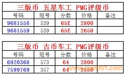 評級普通(精制)紀念幣交易