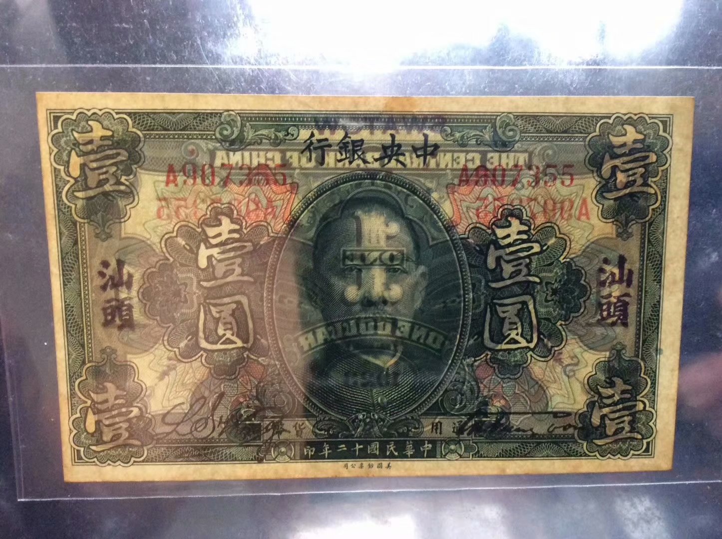 [font=punctuation, pingfangsc-regular, "]1923年中央銀行加汕頭地名壹圓原票保真,票子全新直板,顏色鮮艷脆響硬手,