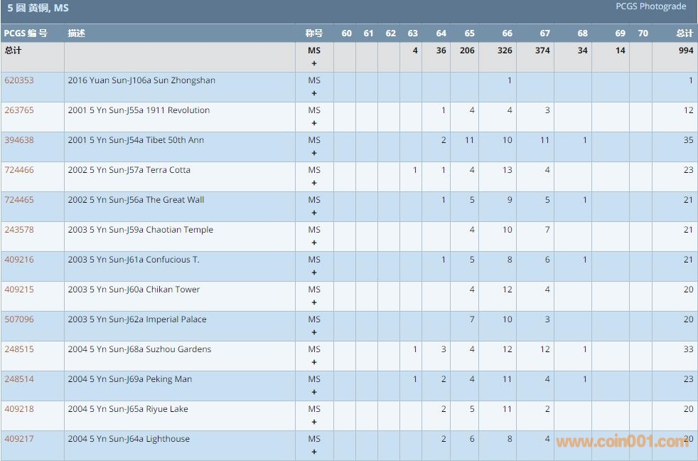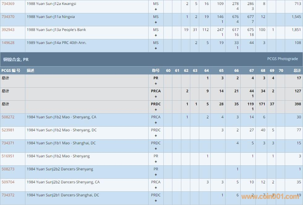 Re:PCGS硬幣評級數(shù)量報 ..