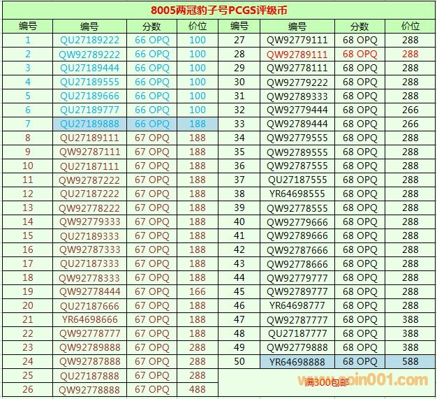 8005兩冠豹子號(hào)PCGS評(píng)級(jí) ..