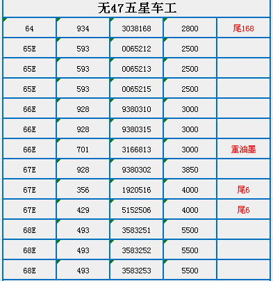 國慶節(jié)車工號碼更新 ..