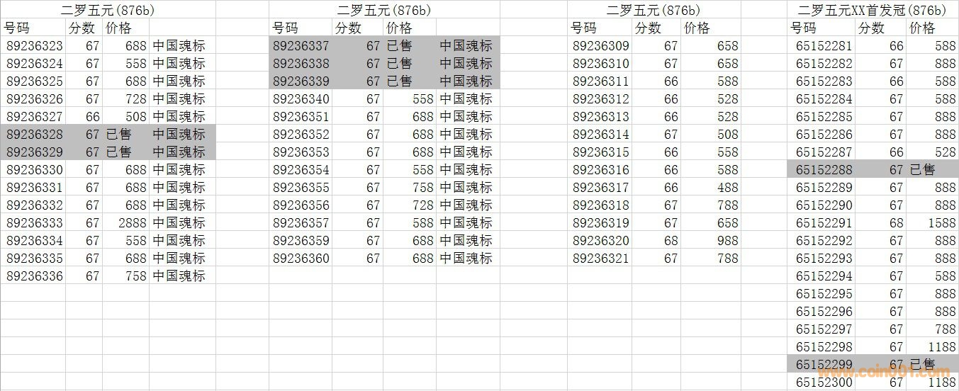 評級普通(精制)紀(jì)念幣交易