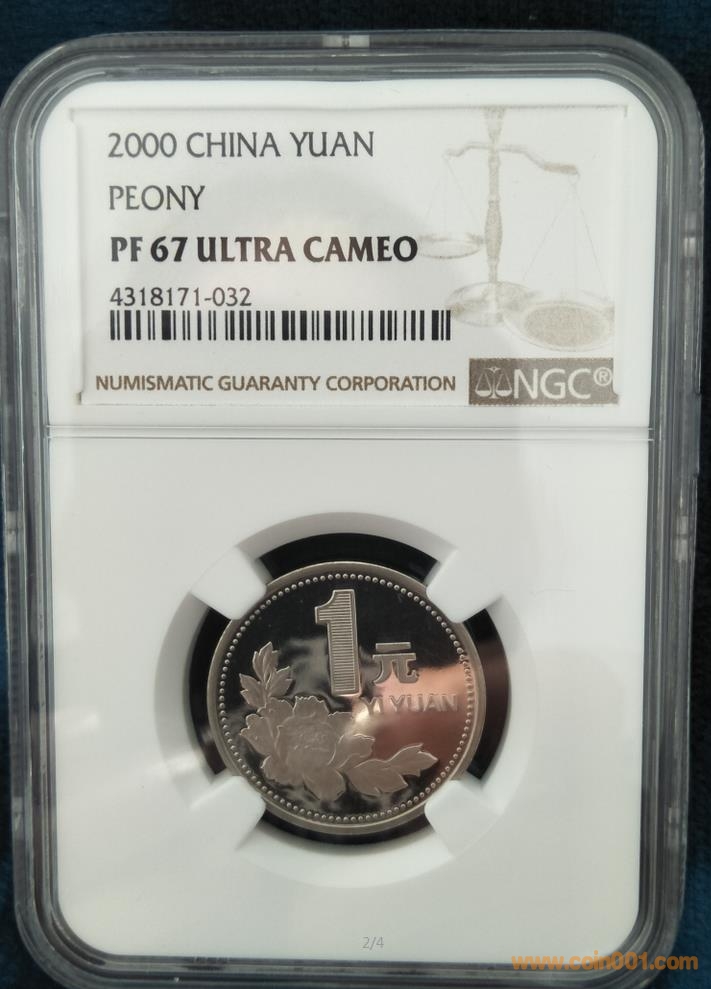 2000年精制牡丹壹元PF67UC 4318171-032售價(jià):3350元/枚 ;PF68UC 4567552-007售價(jià):4350元/枚。