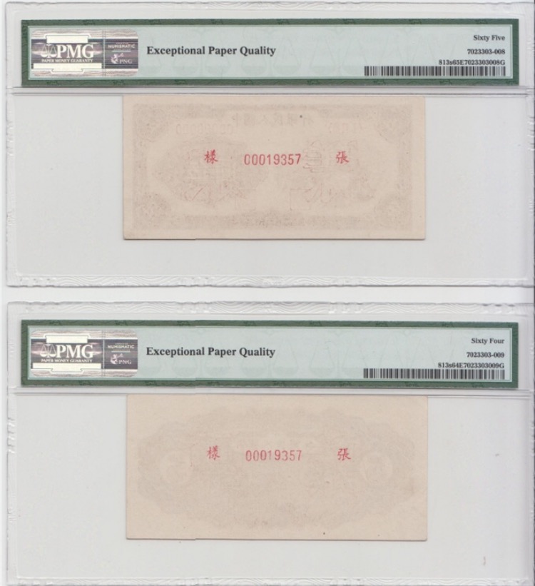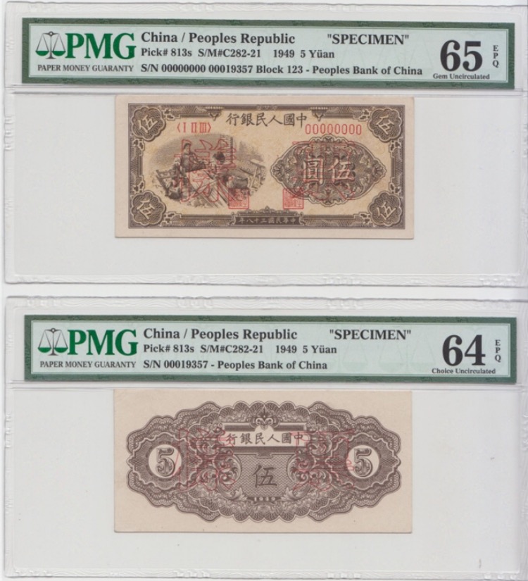 一版5元織布票樣一對(duì)