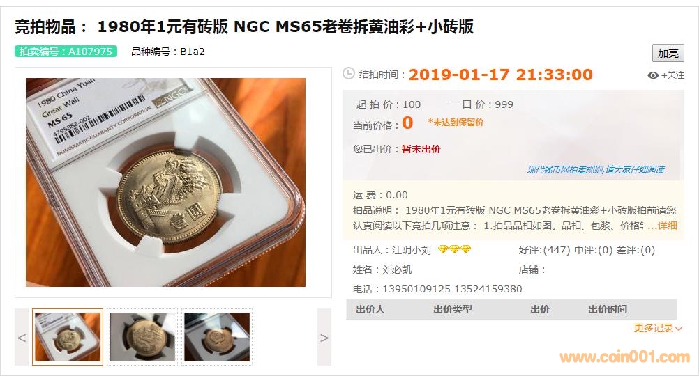 評級普通(精制)紀念幣交易