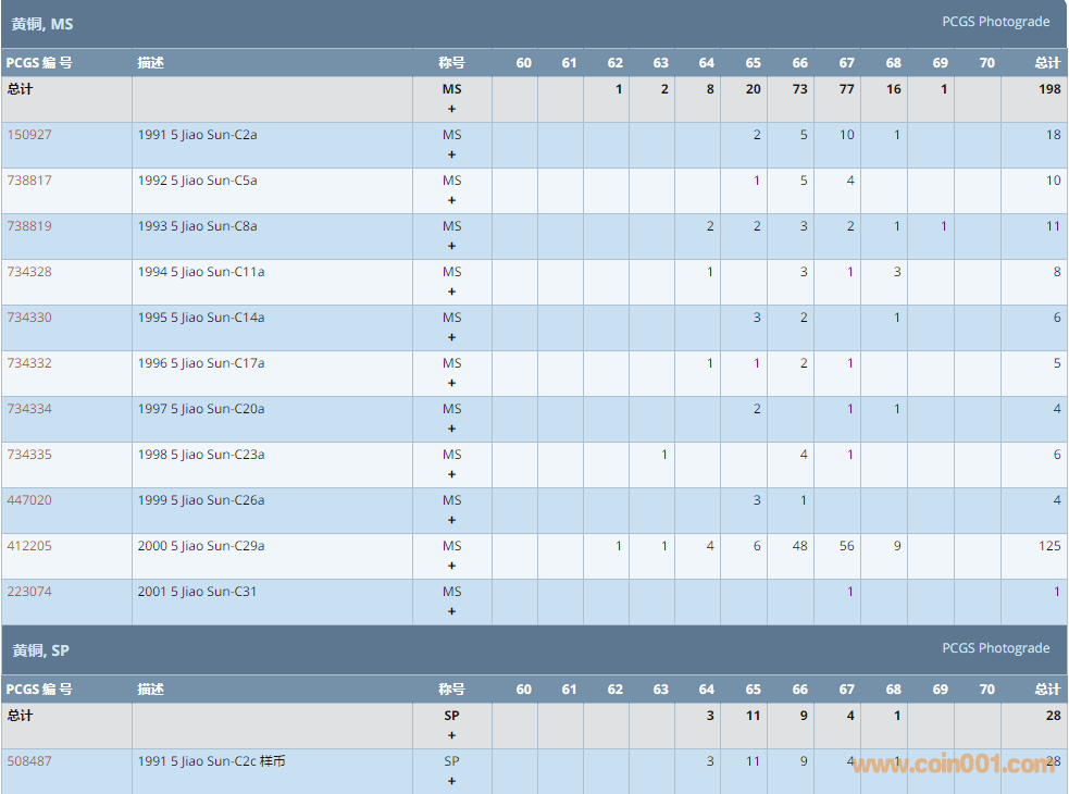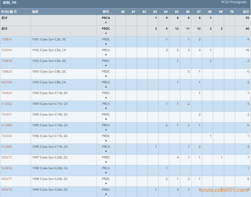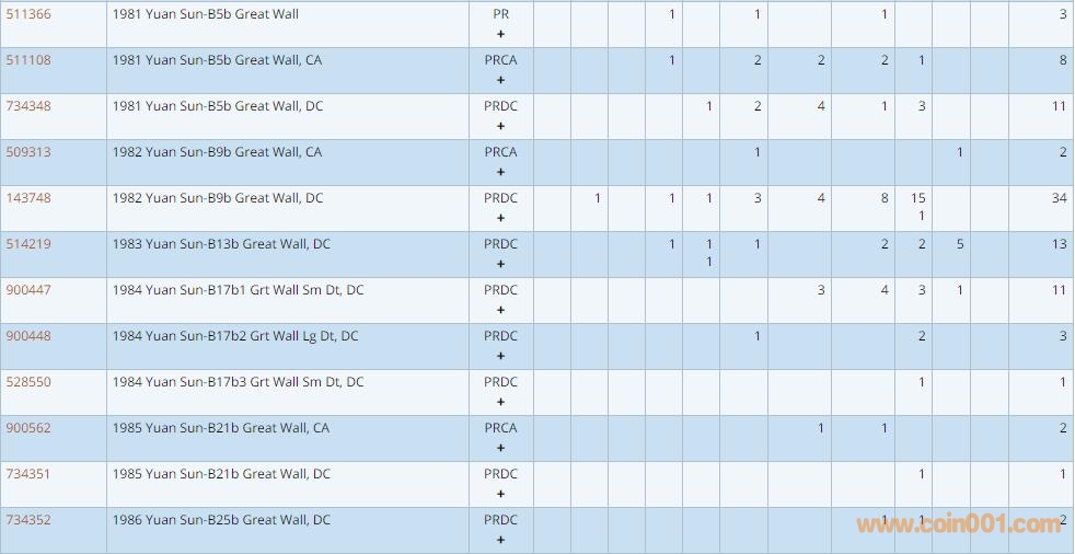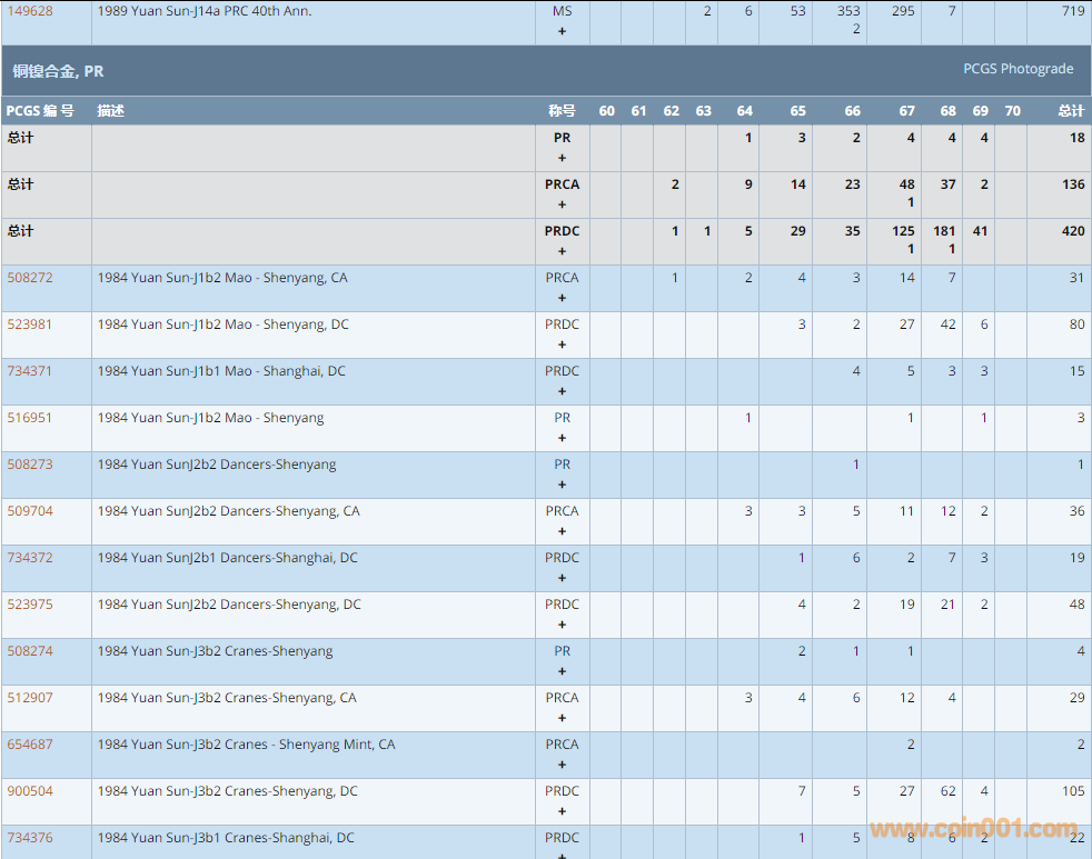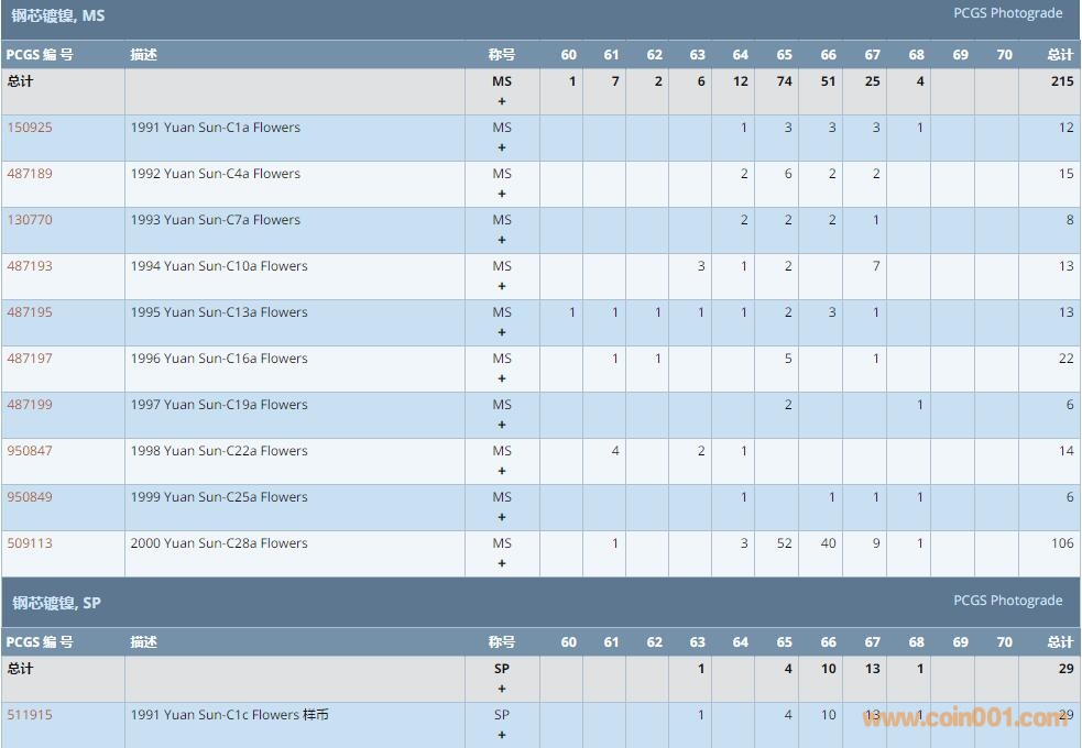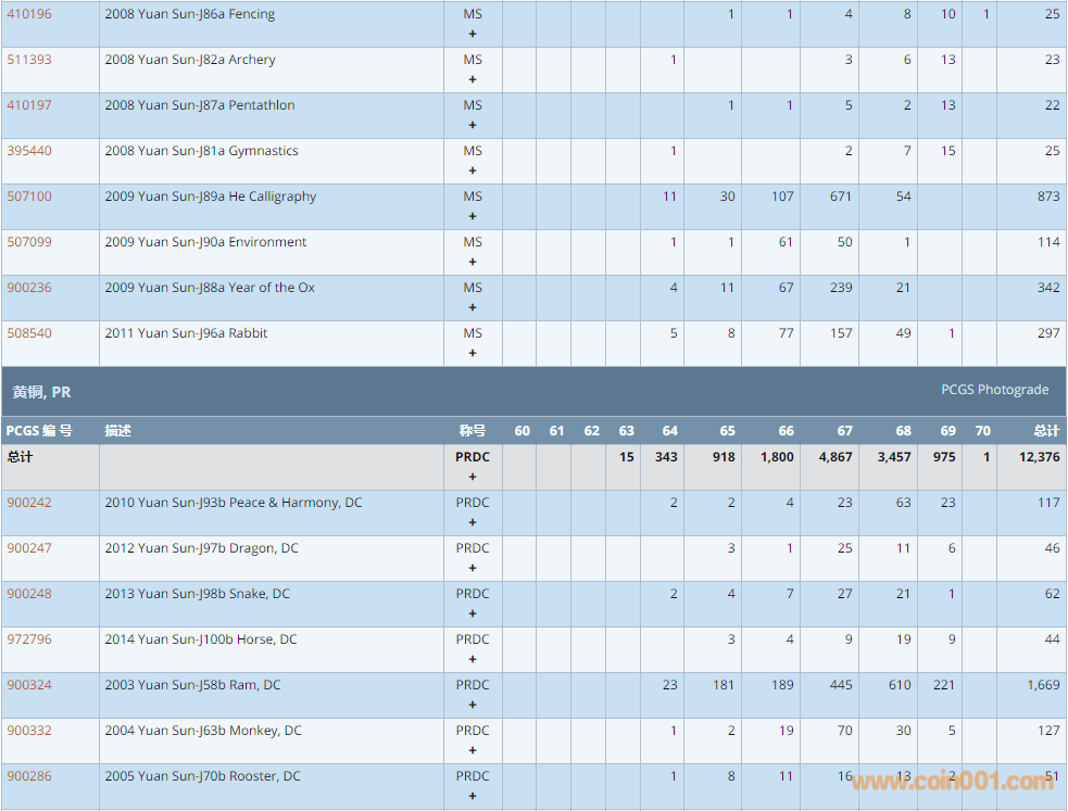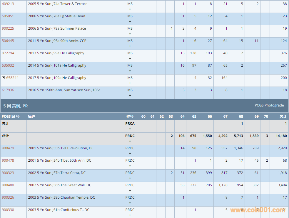 PCGS硬幣評級數(shù)量報告 ..