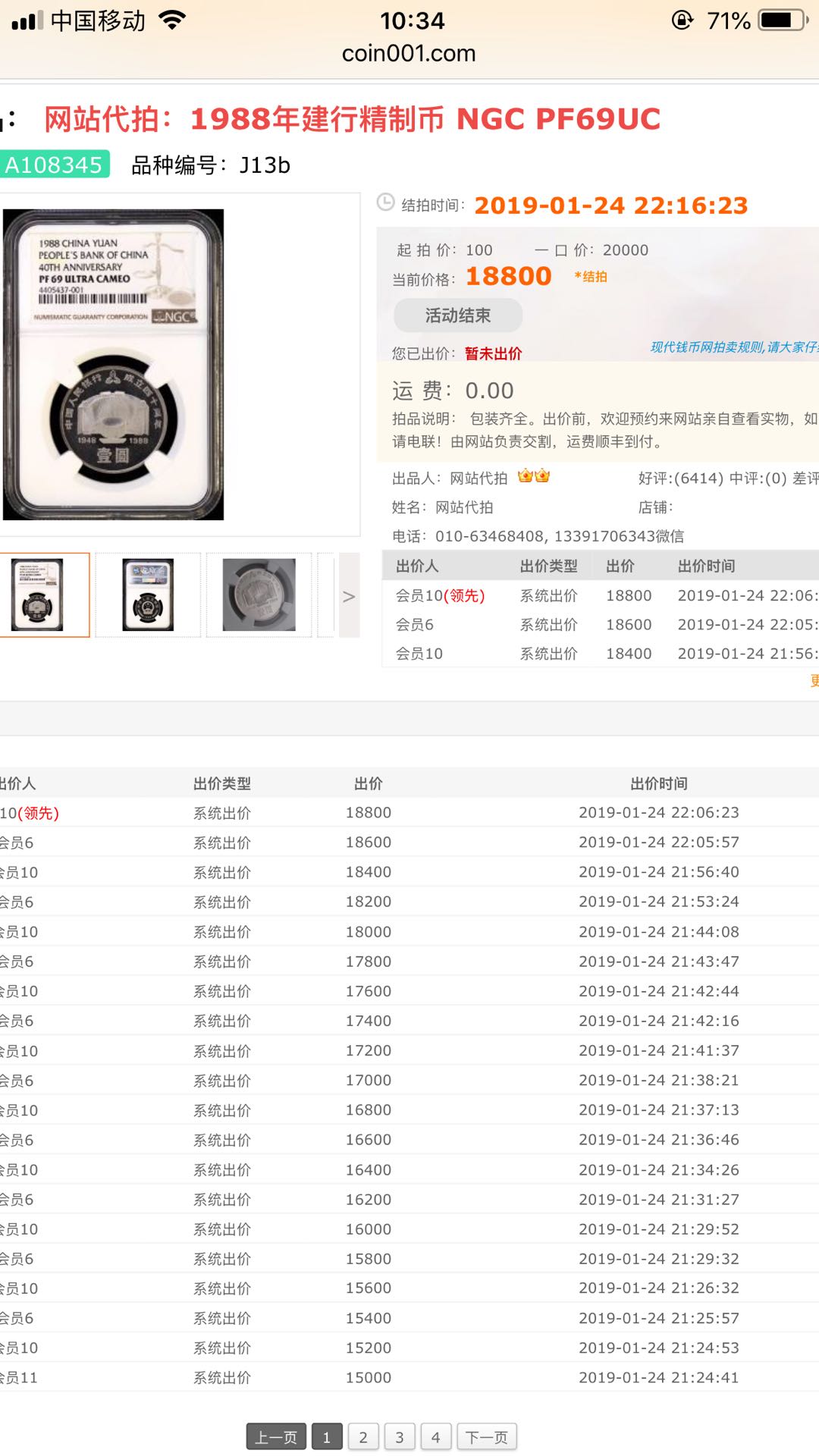 按結(jié)拍價(jià)出售PF69UC 精 ..