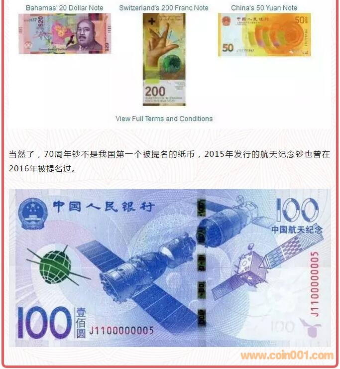 人民幣70周年紀(jì)念鈔獲 ..
