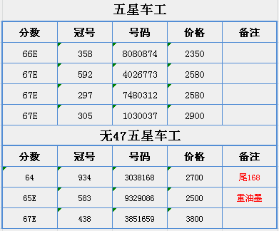 五星車工幾張,無47五 ..