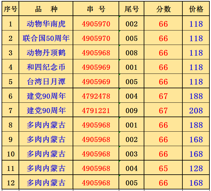 評級普通(精制)紀念幣交易