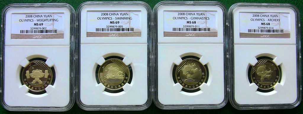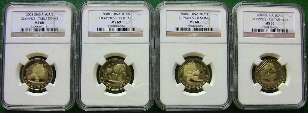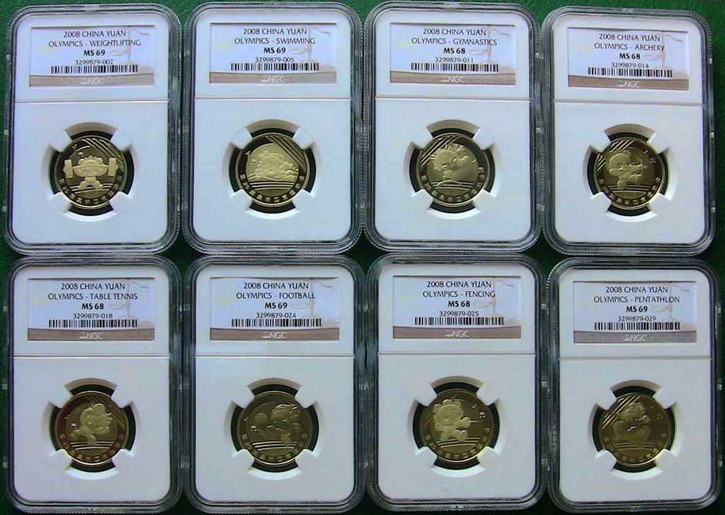 2008年奧運(yùn)精制紀(jì)念幣NGCMS68、69壹套(8枚),為NGC評(píng)級(jí)公司錯(cuò)將精制幣評(píng)級(jí)為普制幣,原汁原味。