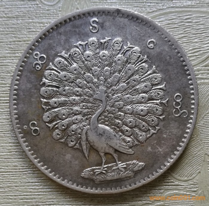 極美緬甸孔雀大銀幣