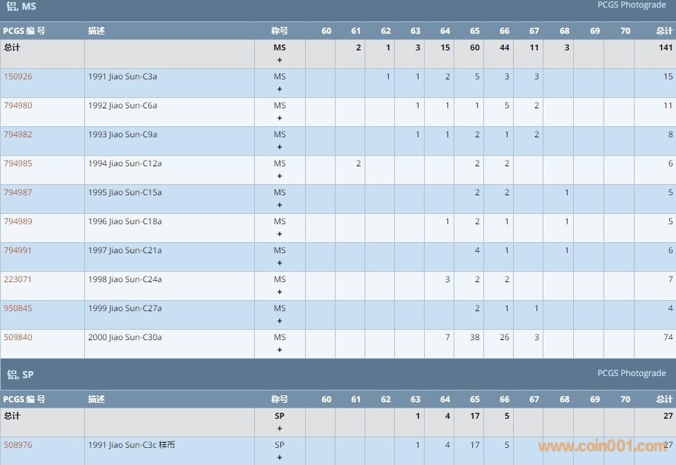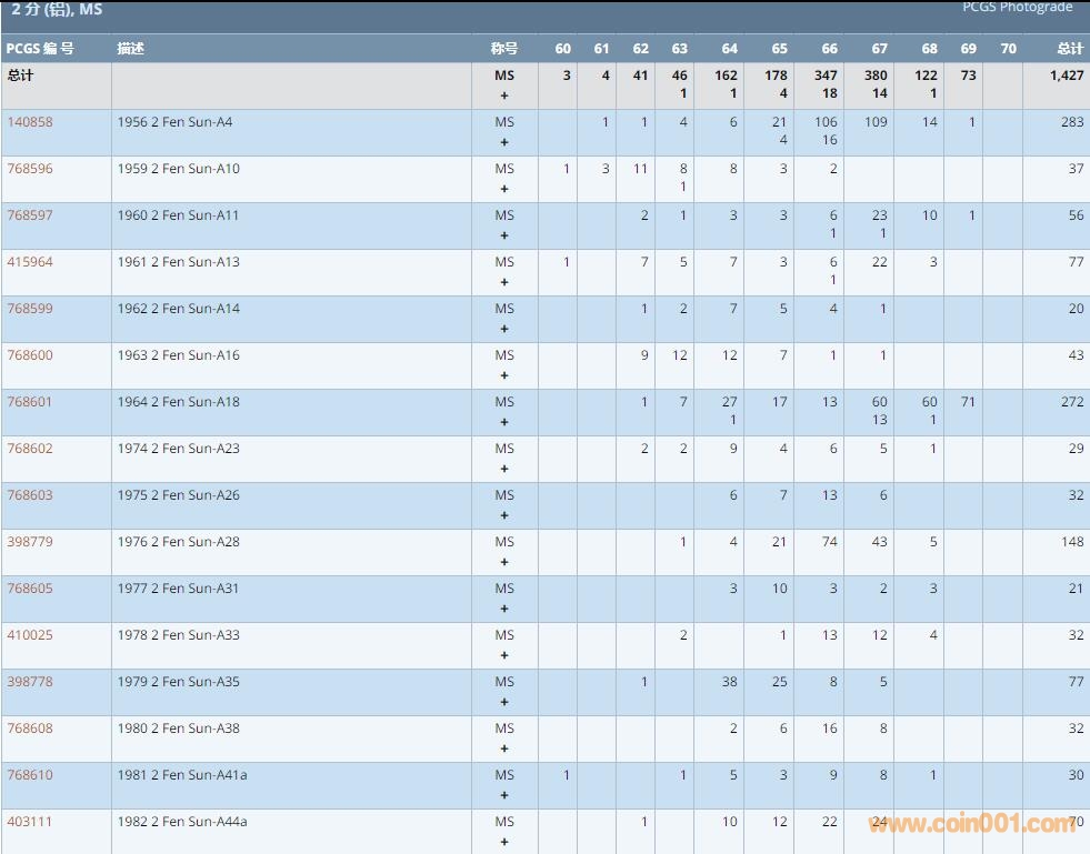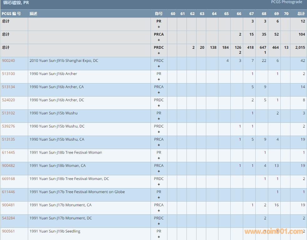 PCGS硬幣評(píng)級(jí)數(shù)量報(bào)告 ..