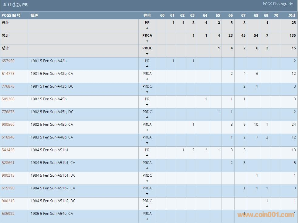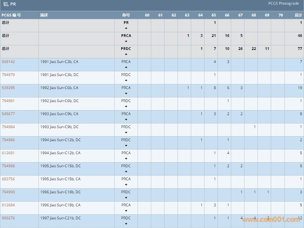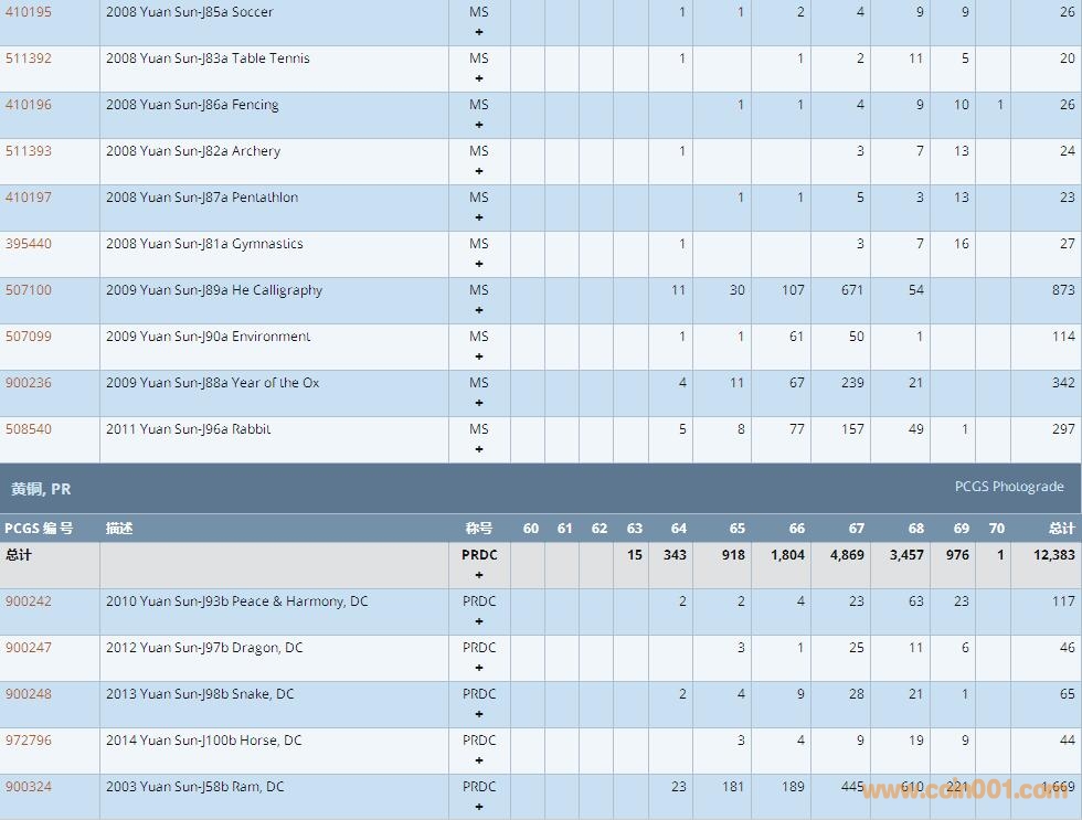 PCGS硬幣評(píng)級(jí)數(shù)量報(bào)告 ..