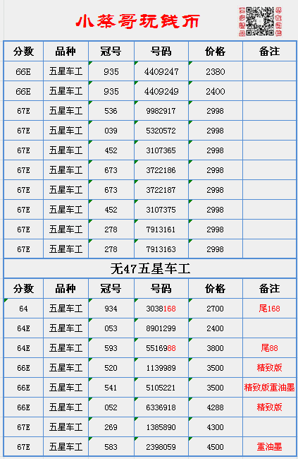 評級普通(精制)紀念幣交易