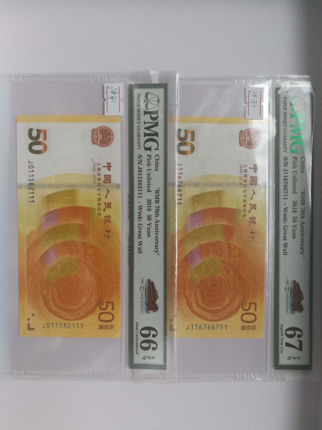 70周年紀(jì)念鈔2張?jiān)u級(jí) ..