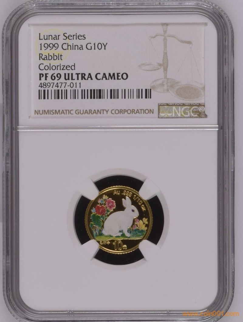 1999年彩金兔 69分 2650/枚 帶證