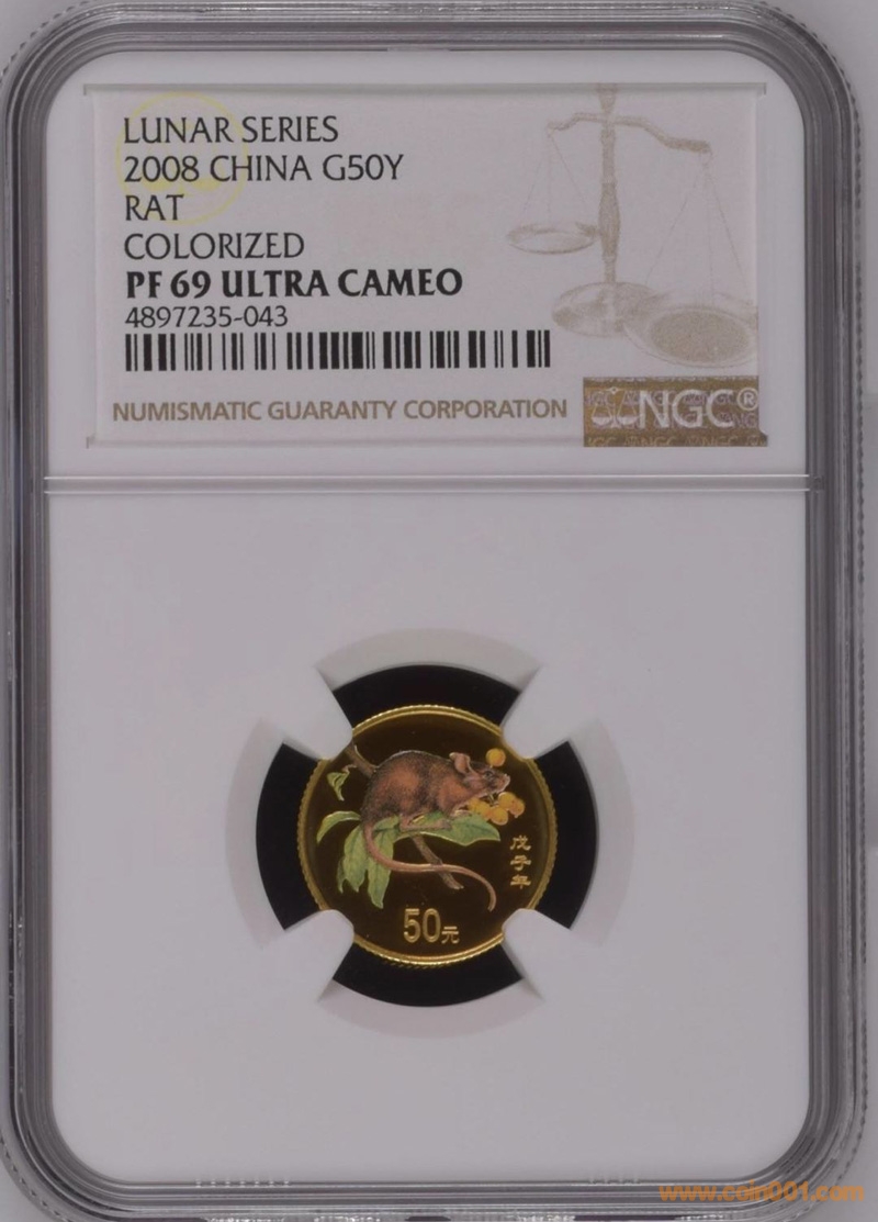 2008年彩金鼠69分 2250/枚 帶證