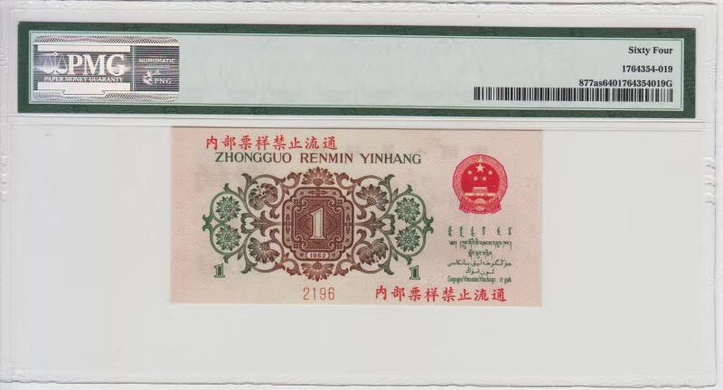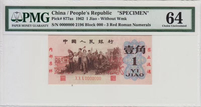 背綠一角票樣   ..