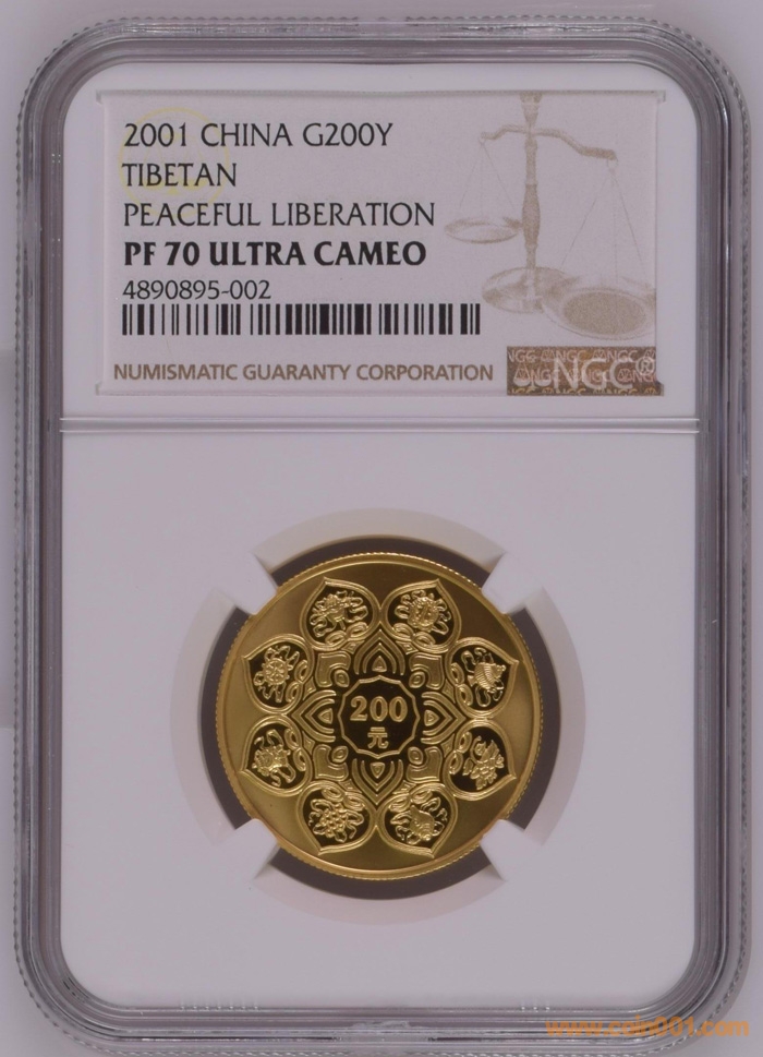 2001年西藏和平解放50周年金幣 盒證齊全