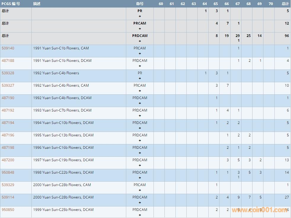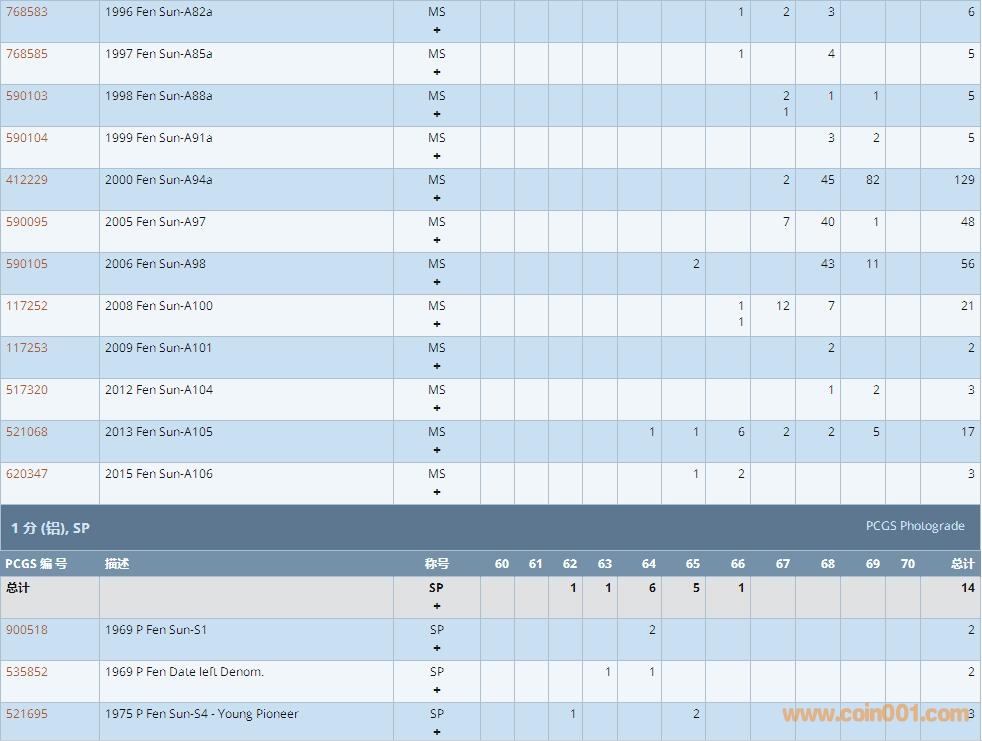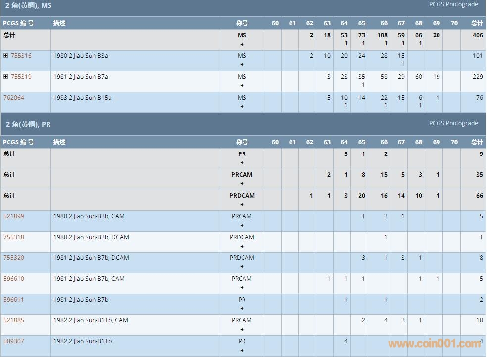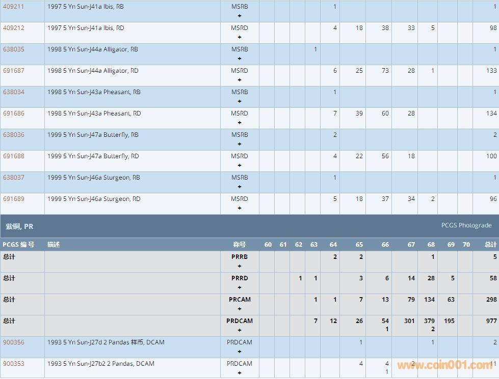 PCGS硬幣評級數(shù)量報告 ..