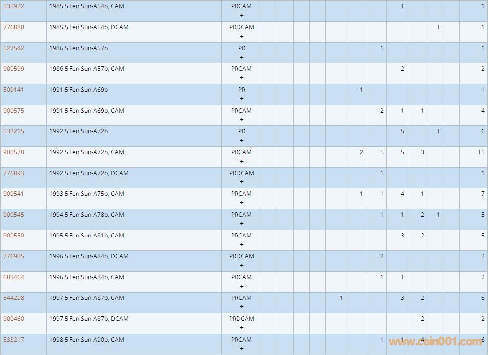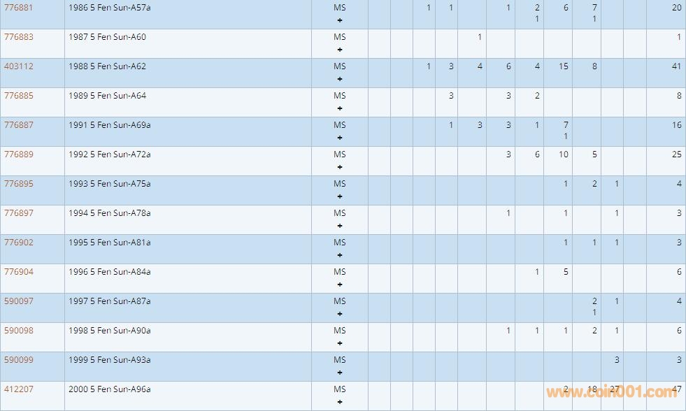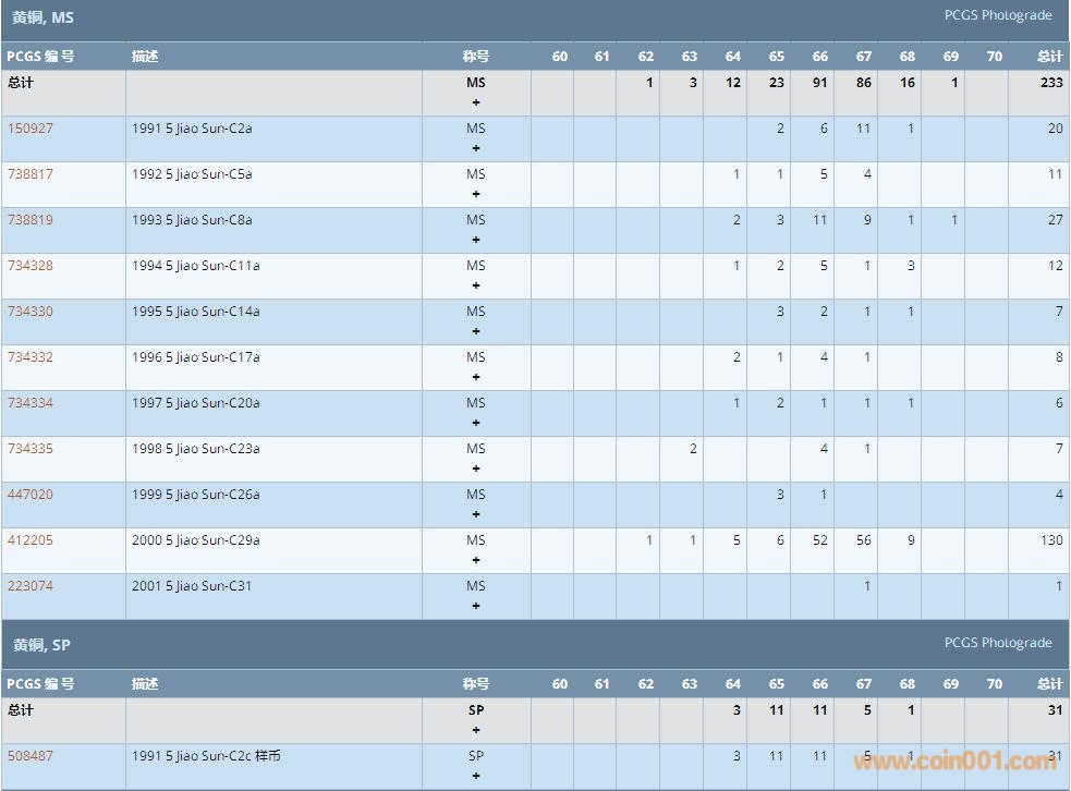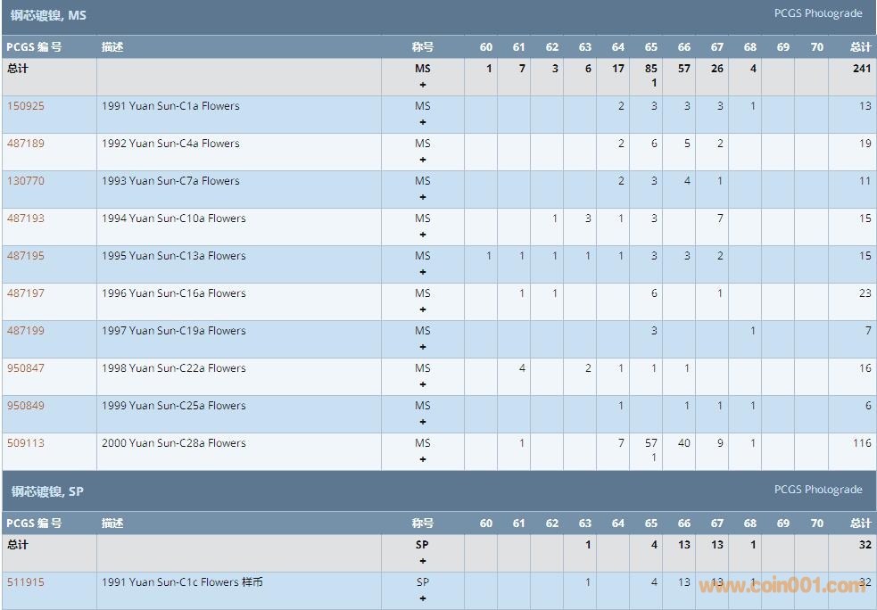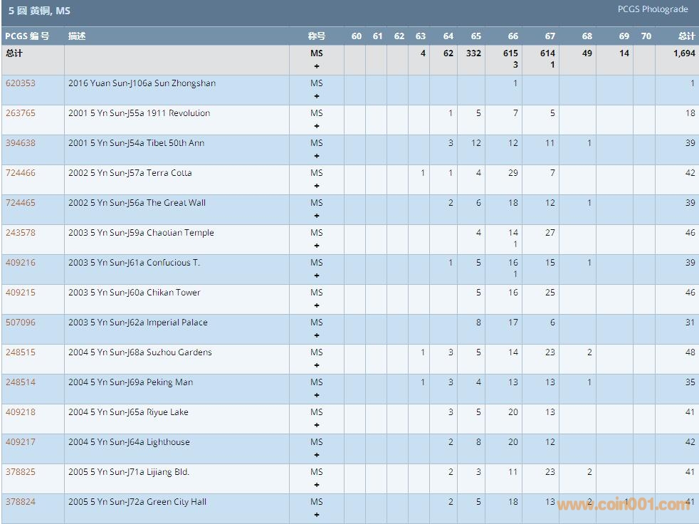 PCGS硬幣評級數(shù)量報告 ..