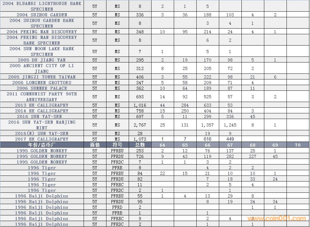 NGC硬幣評級數量報告 ..