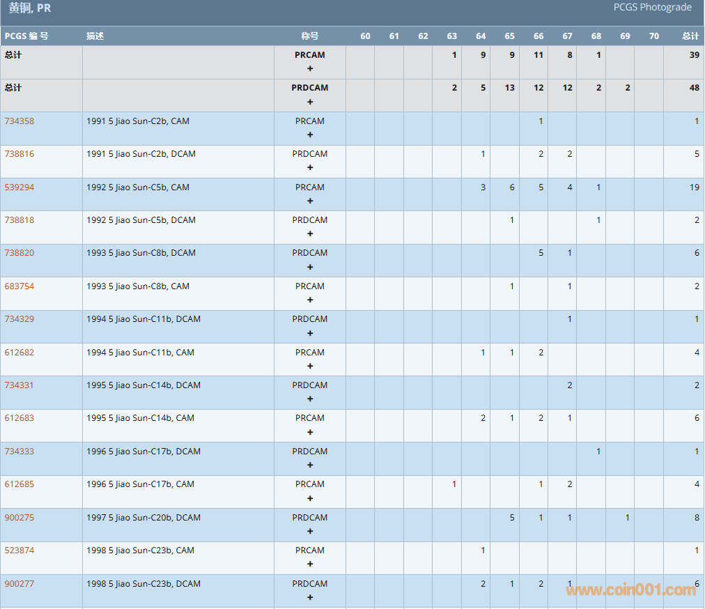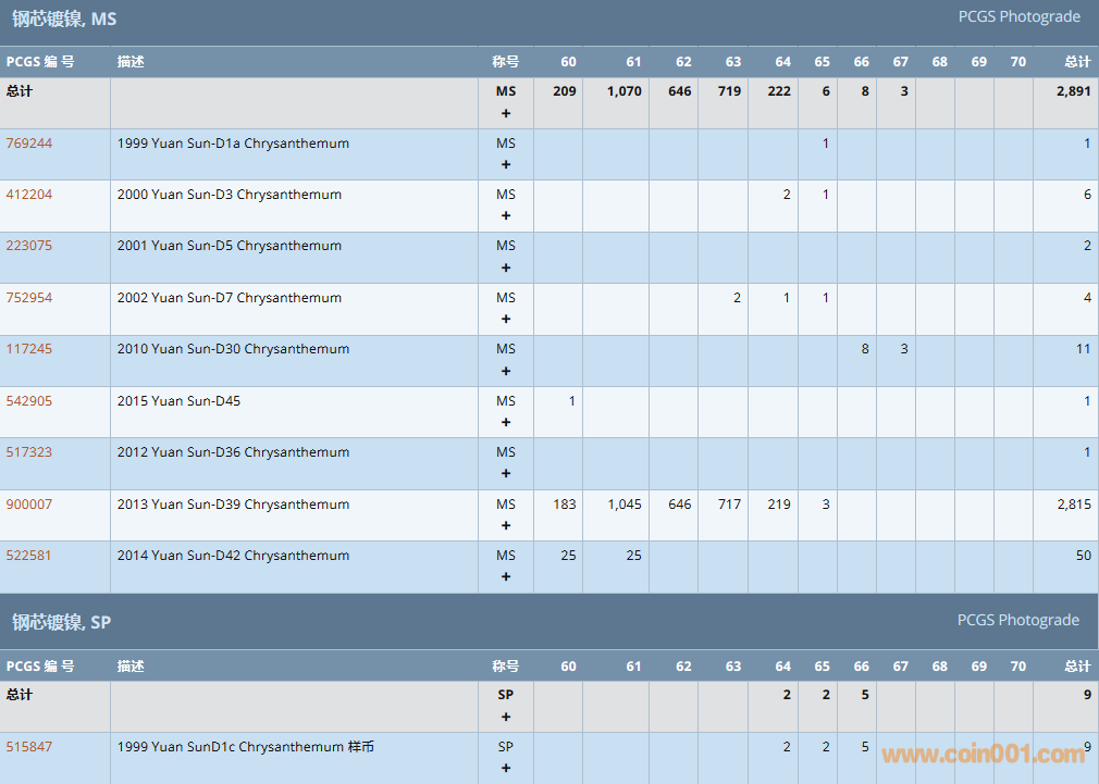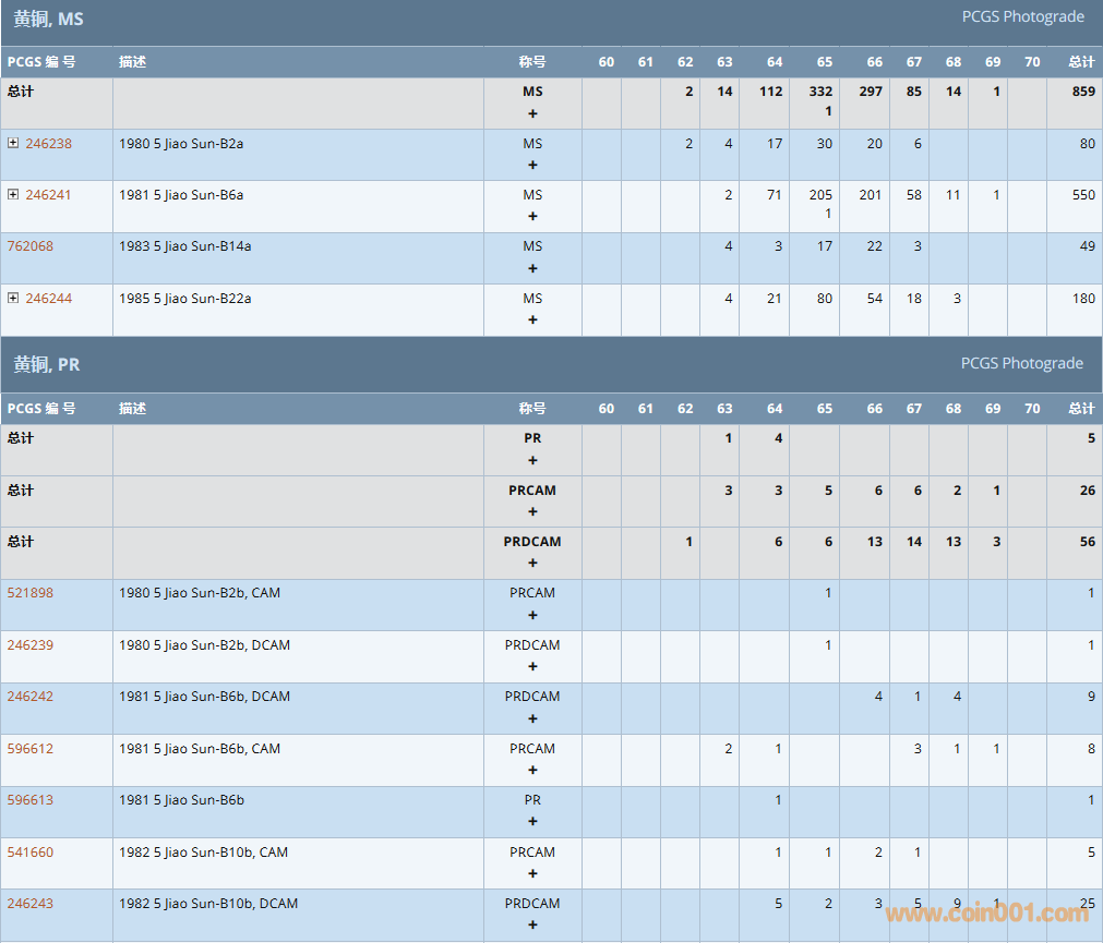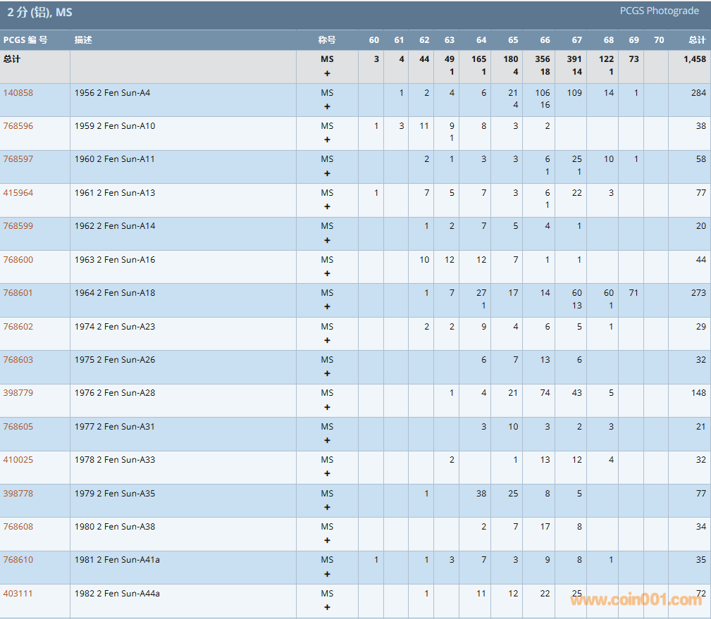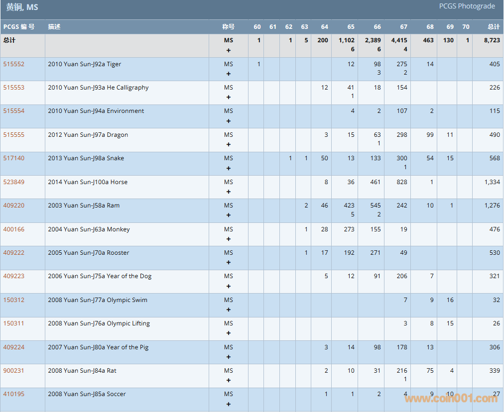 PCGS硬幣評(píng)級(jí)數(shù)量報(bào)告 ..