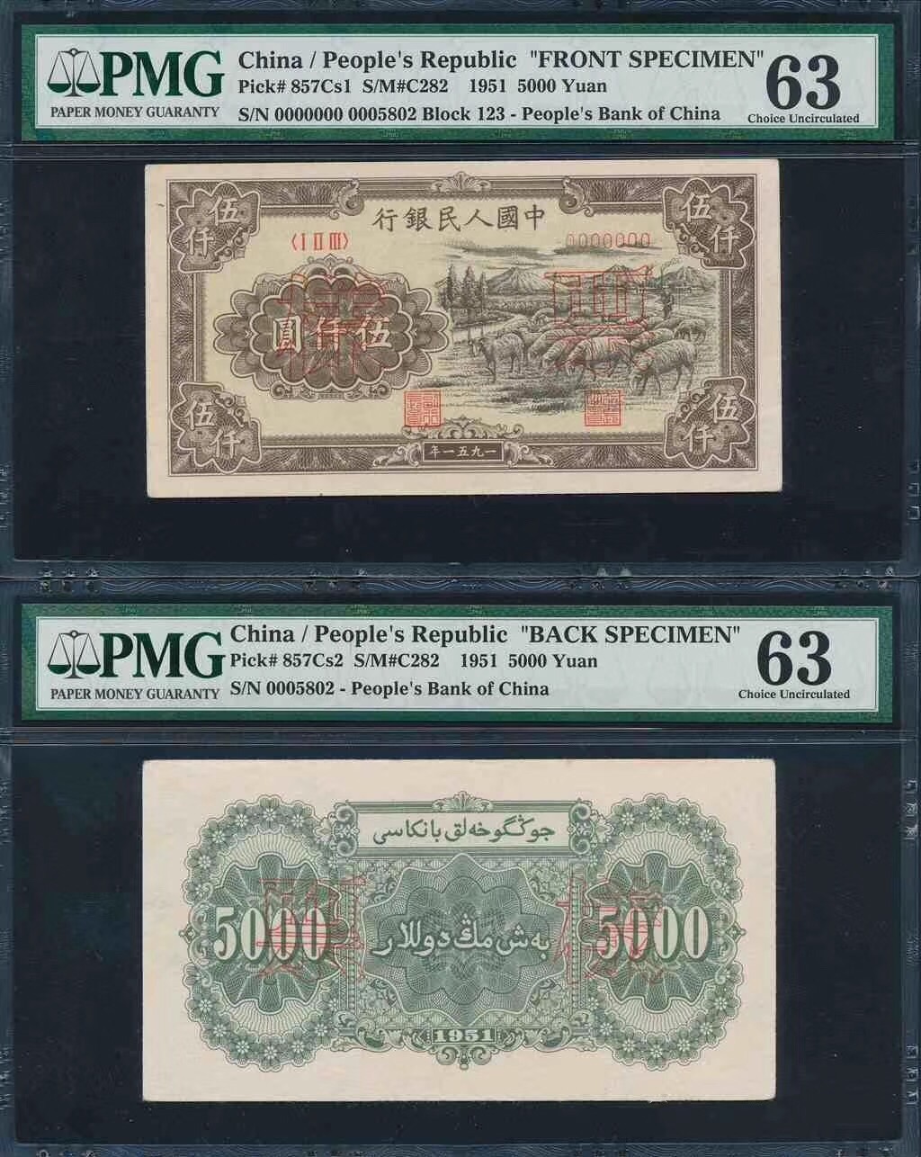 5000元牧羊票樣 PMG63